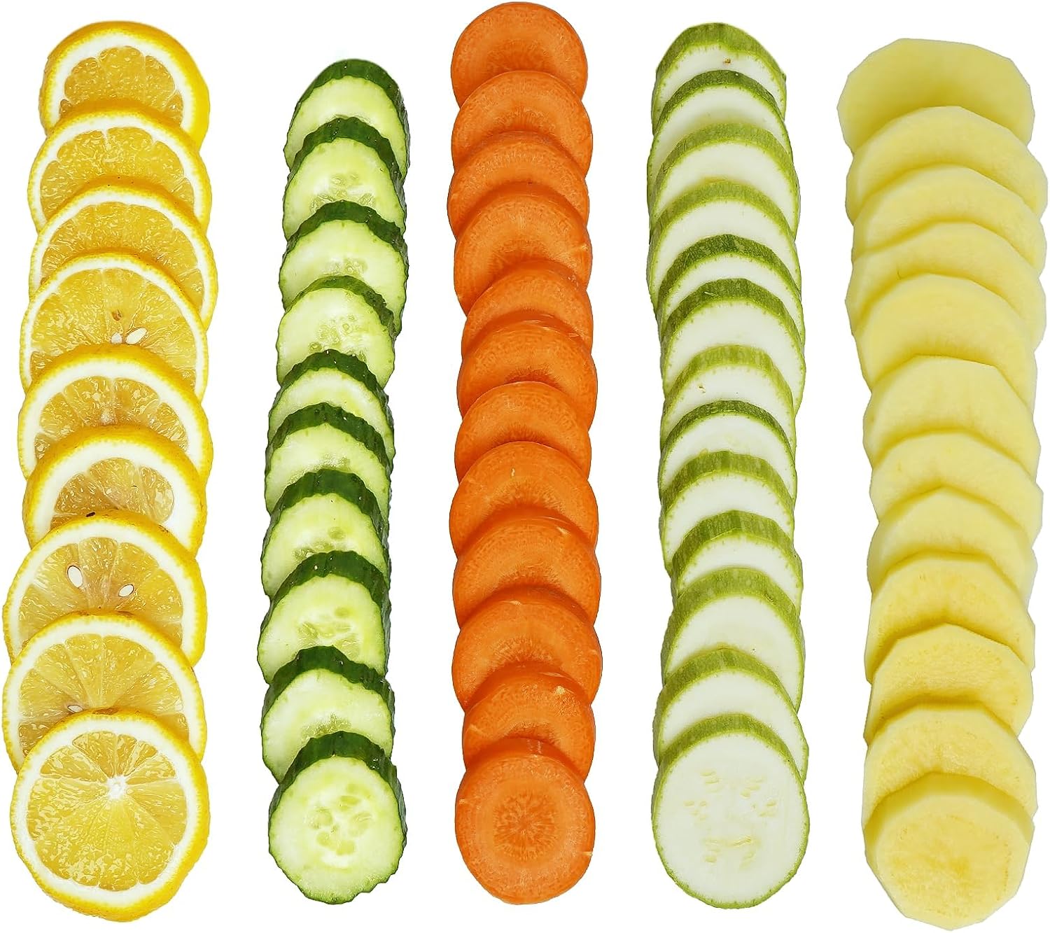 - 【Safe Mandoline Slicer】 The newly Upgraded Vegetable Slicer have larger feeding port & container chopper more food at once.We have all the slicing optiones build in the mandoline slicer.Rotary the switch to change the cutting options, No need to touch the blade ever,In addition, our Vegetable Chopper is easy to install and clean, making it a great companion for your daily cooking.