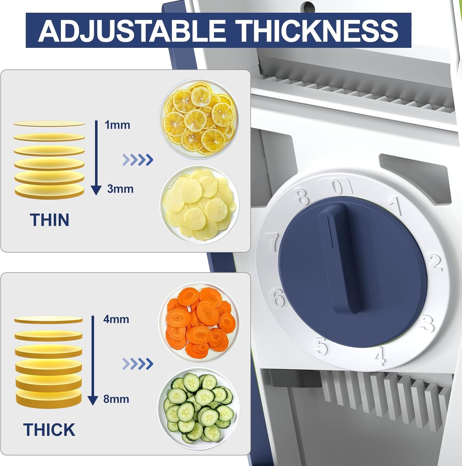 Upgraded Mandoline Slicer for Kitchen &Safe Vegetable Chopper 5 in 1 & Adjustable Mandoline Slicer,Can cut slicing,strips,shredding and dicing Kitchen Veggie chopper (DeepBlue)