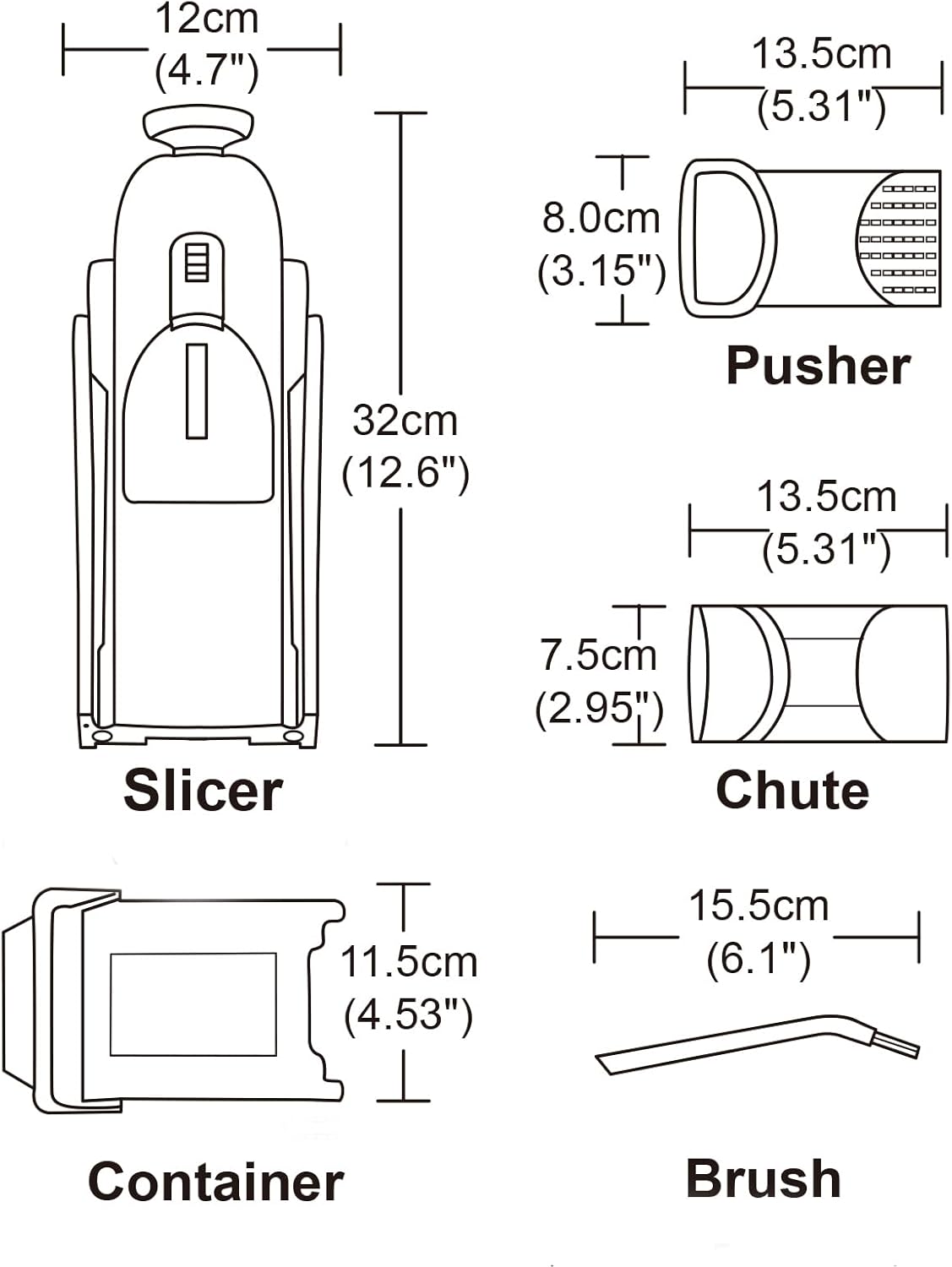- Safe Mandoline Slicer: We have the slicing optiones build in the mandoline slicer.Rotary the switch to change the cutting options, No need to touch the blade ever. Our Vegetable Chopper is easy to install and clean, making it a great companion for your daily cooking. Since the feed port is a standard size, large vegetables need to be cut into small pieces: large potato needs to be cut into 2 pieces before it can fit into the feed port. Gift comes with a cleaning brush, no paring knife