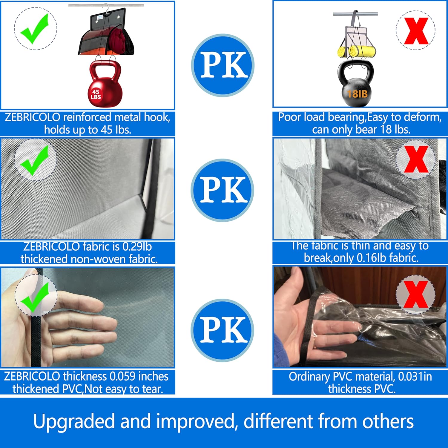 - Material : thickened non-woven fabric; , Heavy Duty Hooks- holds the weight(40lb)
