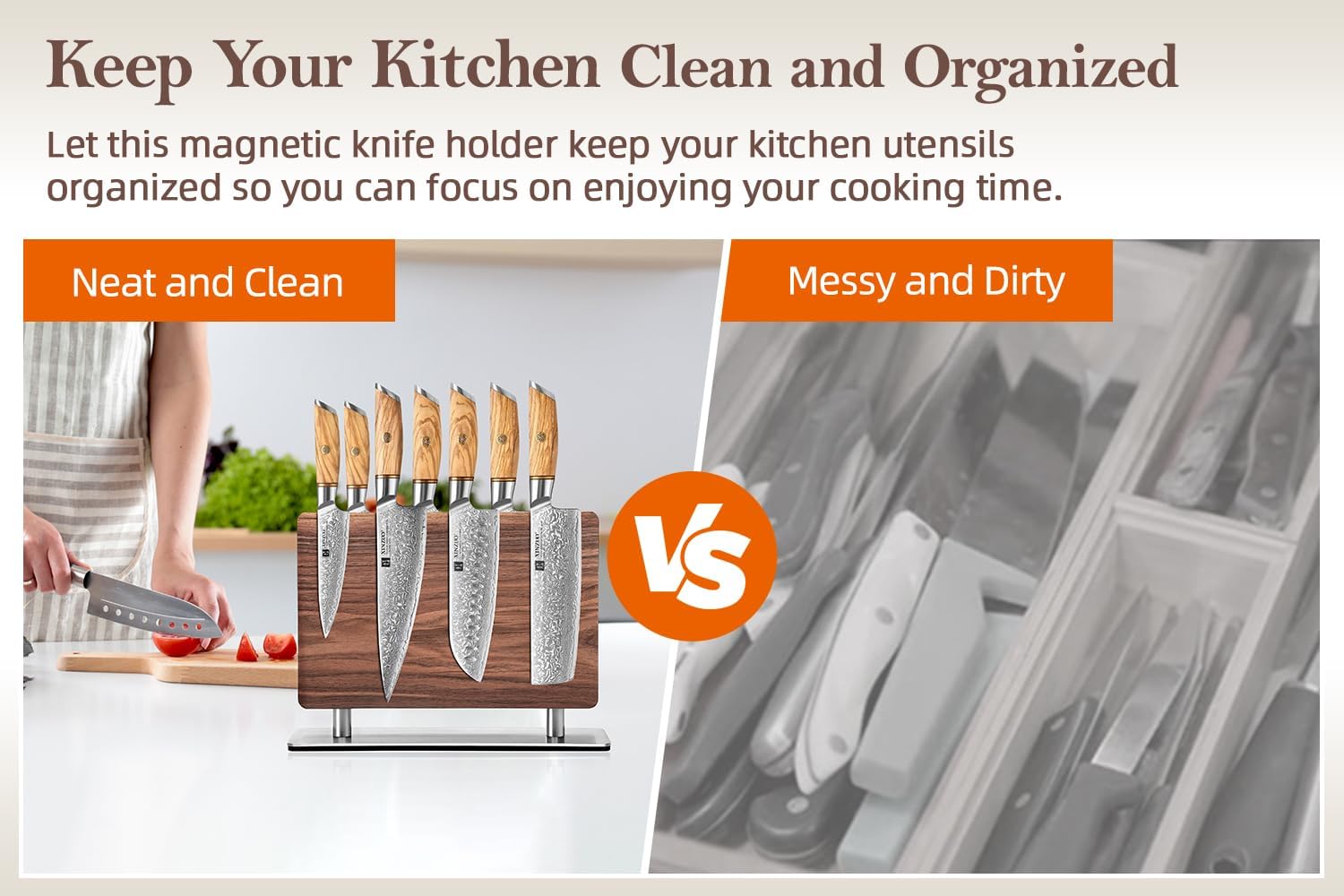 - 【More Powerful Magnets & Effortless Knife Access】Built-in with stronger magnets for both sides,this this knife holder provides a stronger and more stable magnetic force, securely holding your knives and keeping them easily accessible, allowing you to grab the right tool for the job in seconds. No more rummaging through drawers!