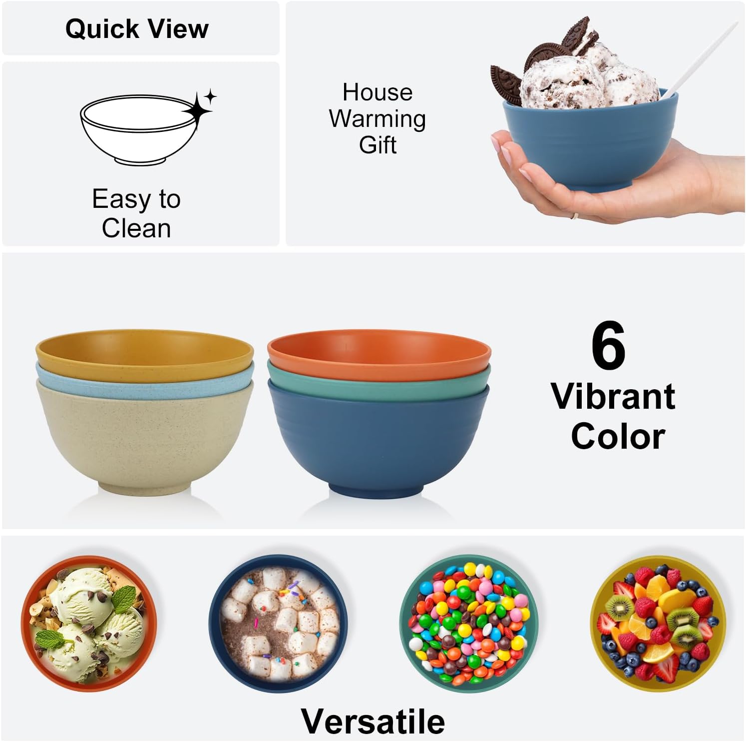 Unbreakable Wheat Straw Bowls for Kids, 10 oz Snack Bowls Set of 6, Small Handy Bowls Set for Snack, Dessert and Appetizer,Multi Color