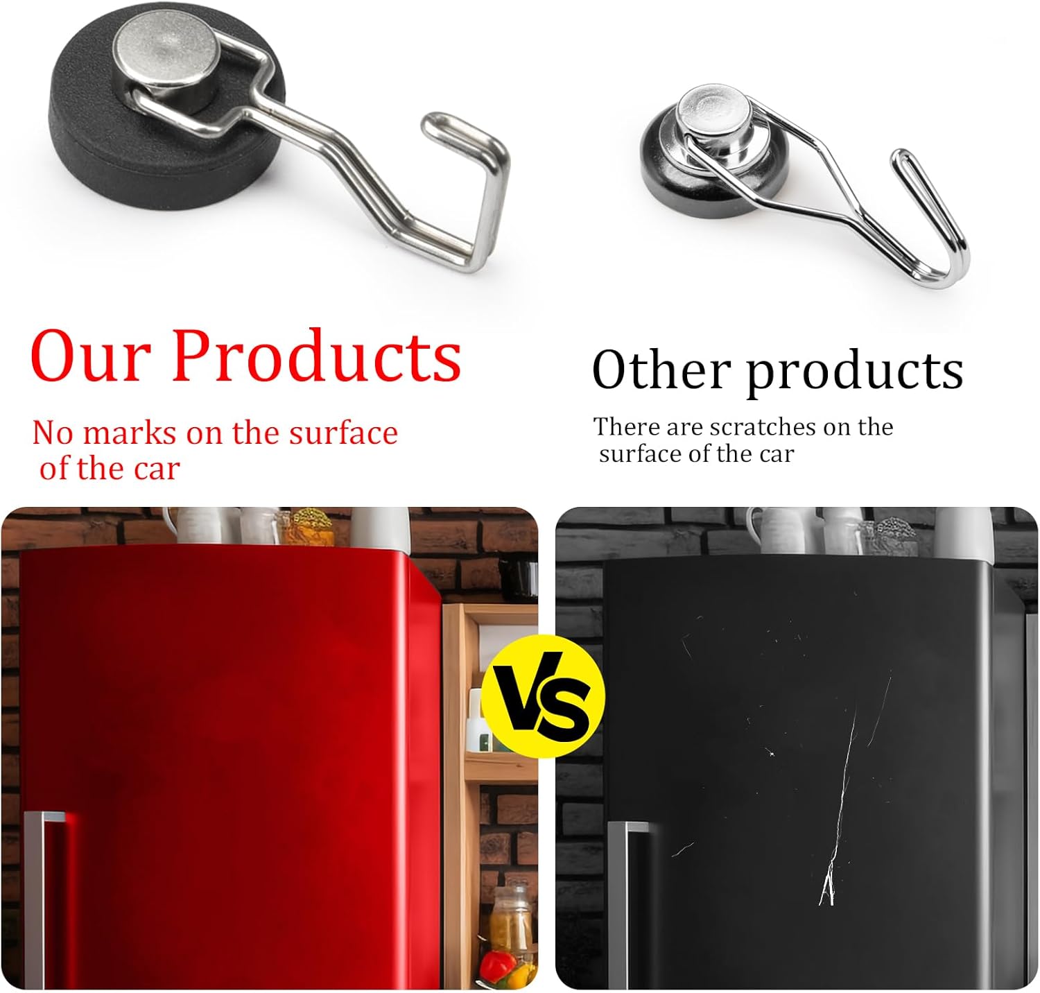 - 【Anti scratch】These magnetic hooks feature a fully wrapped rubber coating that effectively protects the surfaces of refrigerators, cruise ship cabins, and more from scratches. At the same time, the fully coated rubber coating increases the friction and the suction is stronger.