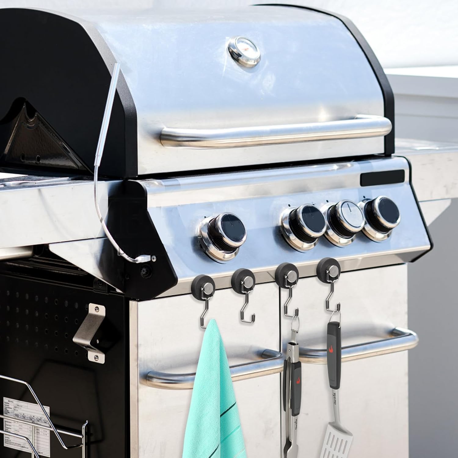 Magnetic Hooks for Grill & Refrigerator,Heavy Duty Magnet Cruise Ship Hook – Strong Magnet for Hanging Grill Tools, Kitchen Utensils, Towels, Outdoor Camping BBQ Accessories (Sliver,12 Pack)
