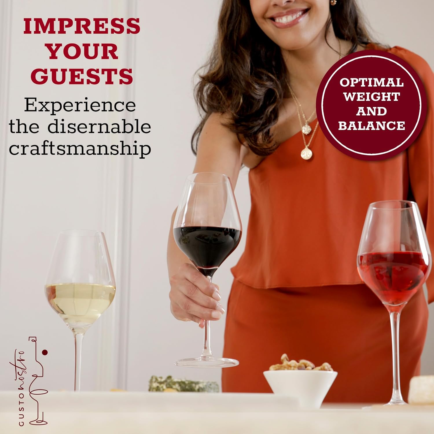 Gusto Nostro Crystal Wine Glasses Set of 4, 15.2 Oz Long Stem Modern Wine Glasses for White and Red Wine, Dishwasher Safe, Fancy, Elegant, Large and Tall Wine Glass for Wedding Christmas Anniversary
