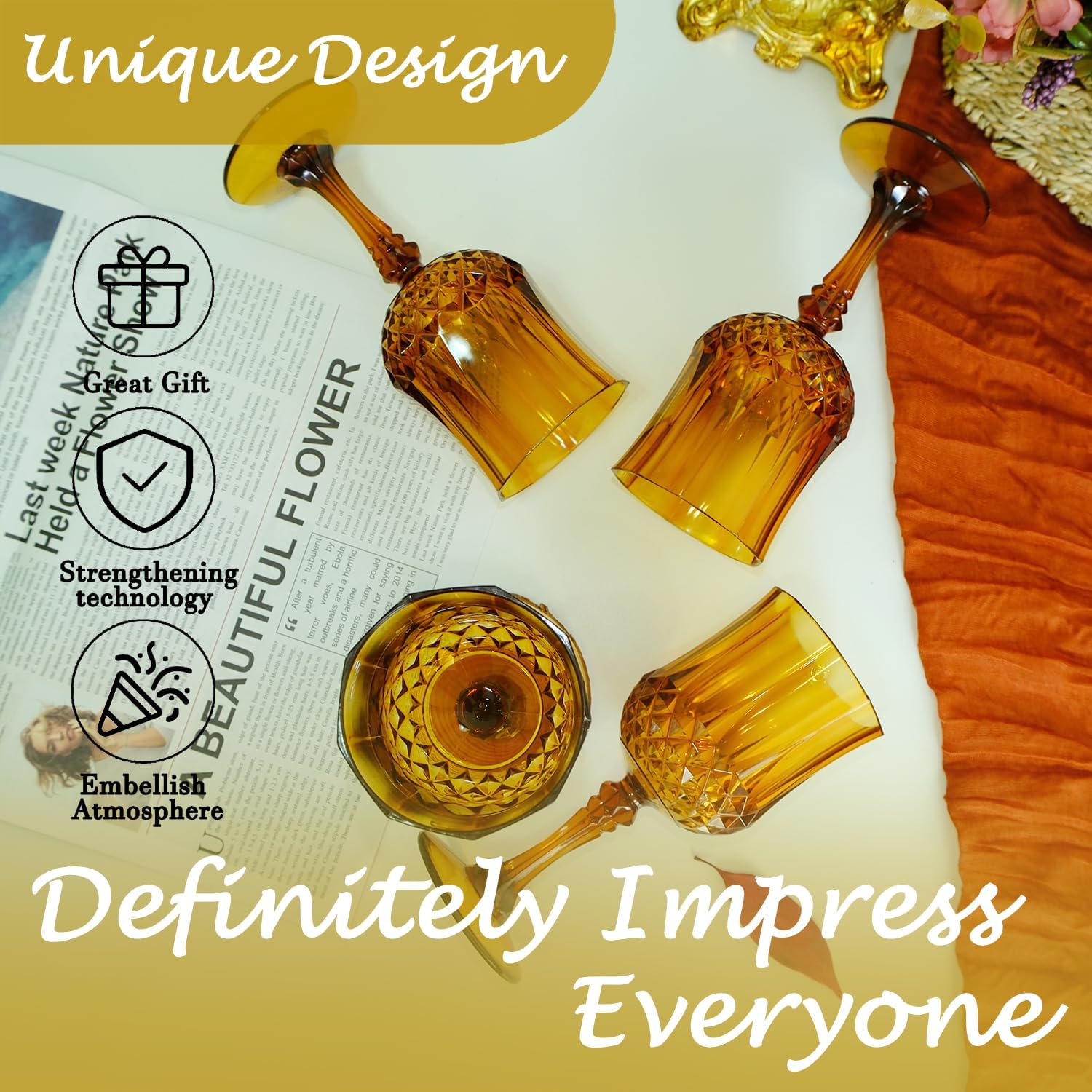 Plastic Wine Glasses,Plastic Goblets Vintage Style Cordial Drinking Glasses for Wedding Reception, Grand Event Party Supplies (24, Amber)