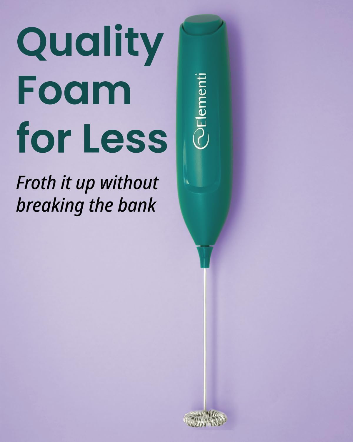 Elementi Powerful Matcha Whisk – Lightweight Matcha Frother Wand & Drink Mixer Handheld, High Speed Mini Whisk for Tea & More, Coffee Mixer Wand, Milk Frother Handheld (Emerald Green)