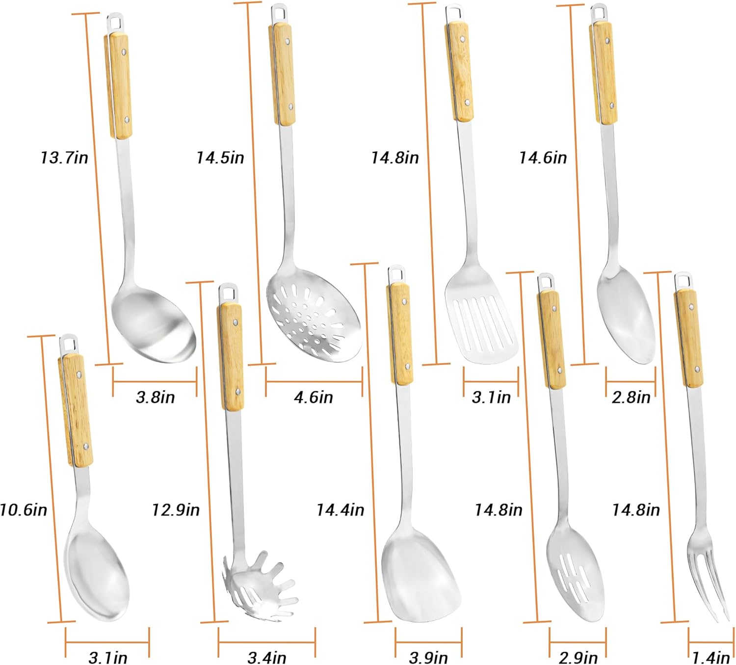 - 【Design of the Kitchenware Set】 : Wooden handle is ergonomic, durable and heat-resistant. Can be easily turned and cooked to help you make delicious dishes