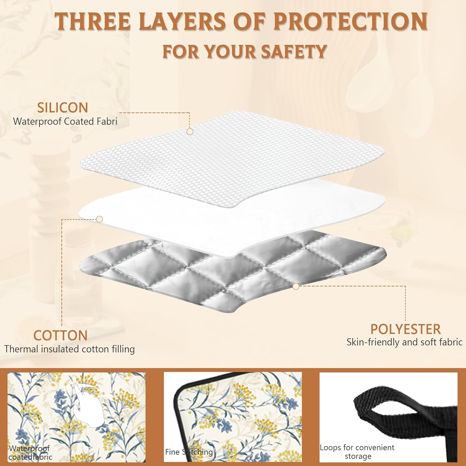 - Material: Made of polyester with quilting and padding, these pot holders offer added heat resistance. They are perfect for handling hot dishes and pots in the kitchen.