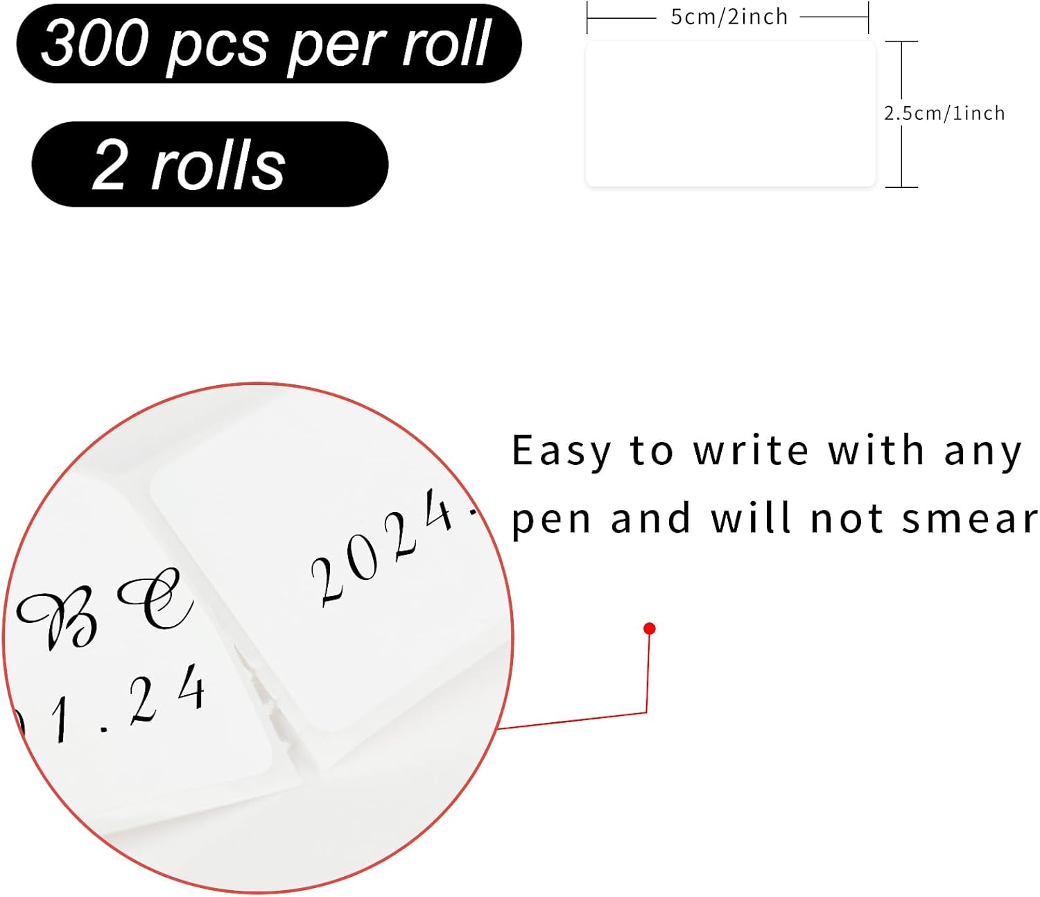 - 🥦Each label sticker is about 1x2 inch,2 rolls,300pcs per roll.