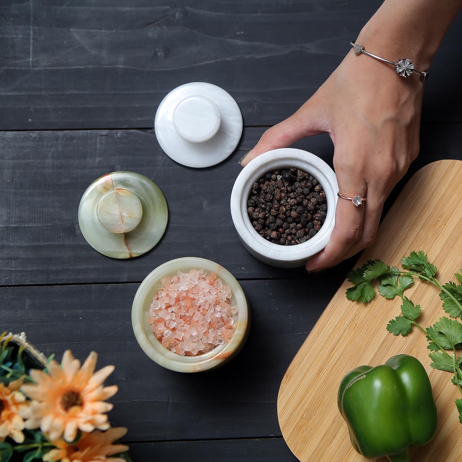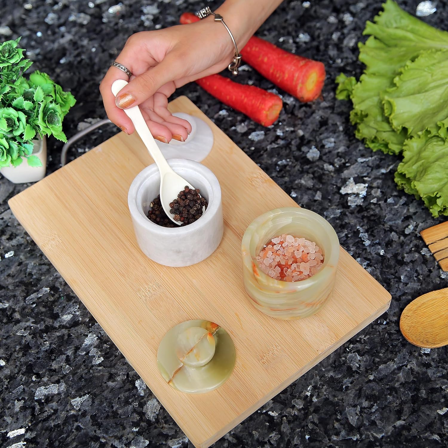 - 🍽️Pure Marble: Elevate Your Culinary Experience With Our Pack Of 2 High-quality Salt Holder With Lid Blending Elegant Design And Superior Craftsmanship To Bring Both Style And Functionality To Your Kitchen Counter