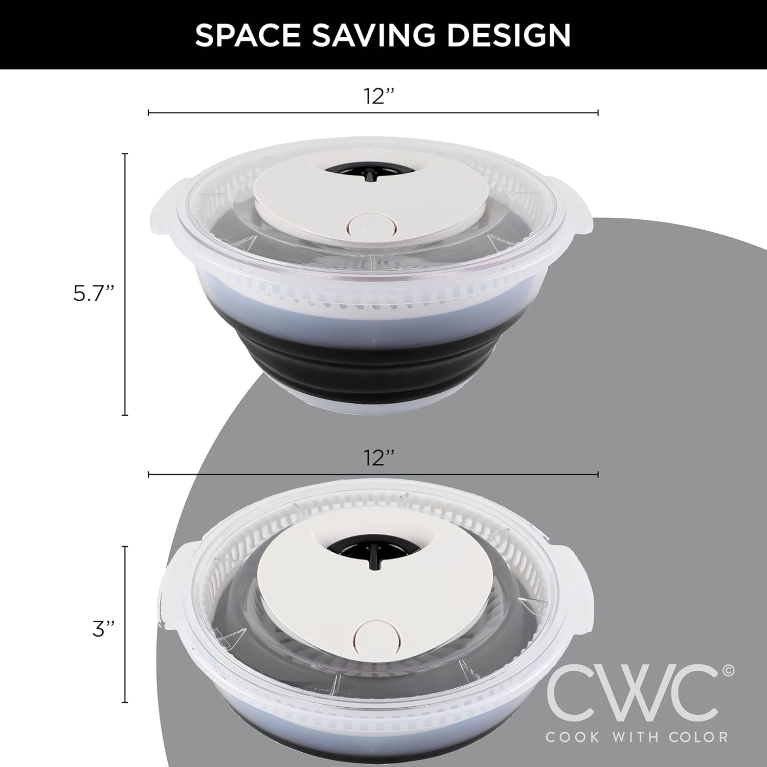 COOK WITH COLOR Collapsible Salad Spinner - 4 QT Space Saving Lettuce Dryer with Folding Collapsible Colander Great for Washing and Drying Fruit and Vegetables (Black)