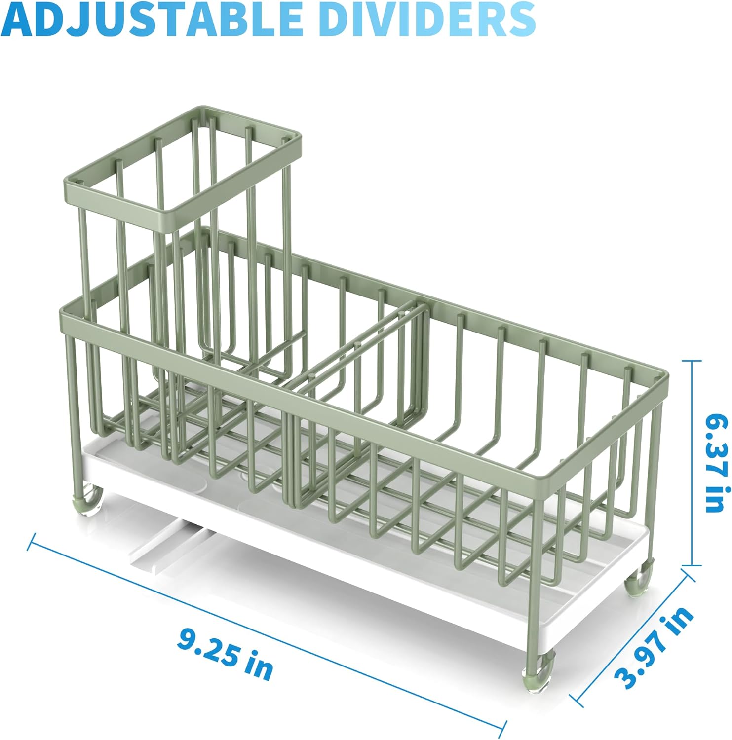 Cisily Sage Green Sponge Holder for Kitchen Sink, Sink Caddy Organizer with High Brush Holder, Kitchen Countertop Organizers and Storage Essentials, Rustproof 304 Stainless Steel, Soap Dispenser
