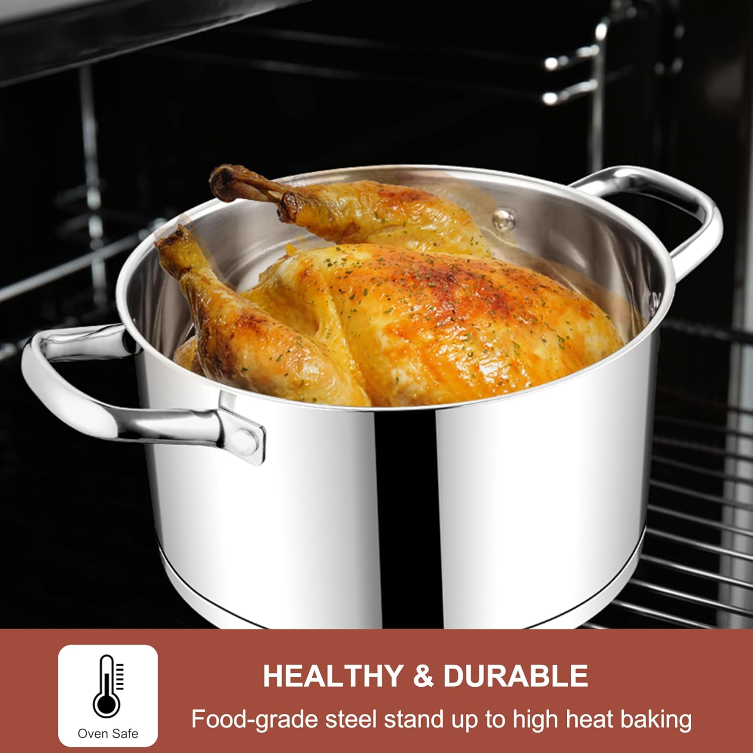 - HEALTHY STAINLESS STEEL POT: Made of food-grade stainless steel with no toxic, No worry any material leaching into your food , Good stability, rust and corrosion resistance steel with flat thick bottom maintains it shape for longevity, Prevent hot spots to reduce smoke to provide a healthy cooking