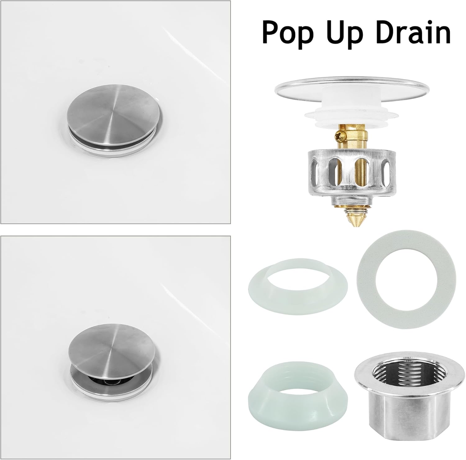- Built-in Strainer: The Pop Up Drain comes with a detachable strainer basket that not only can prevent debris clogging the drain, but also can catch hair and jewelry. Anti-blocking, easy to remove and clean