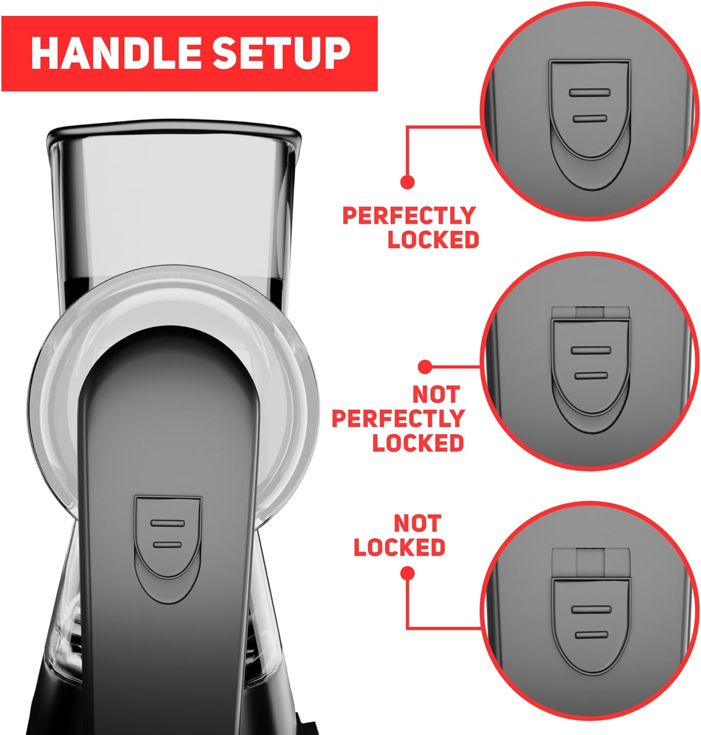 - [STURDY AND SAFETY] Featuring a strong suction base, our rotary grater stays securely in place on smooth countertops, preventing slips during use. The handle design keeps your hands away from the blades, offering a safer grating experience.