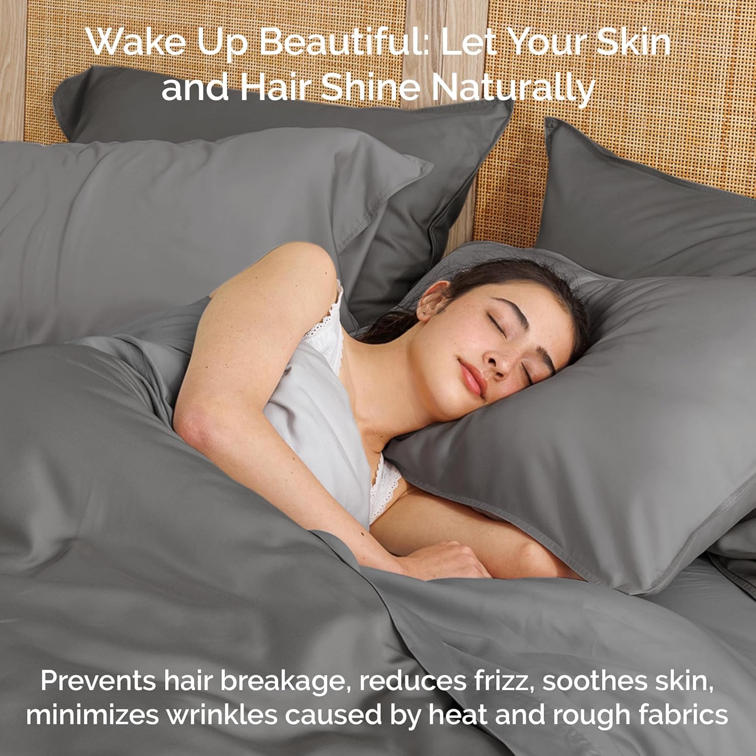 100% Viscose from Bamboo Sheets King Size, Super Soft Bedding Set, 4PC Cooling Sheets for Hot Sleepers, Vegan Silk Moisture Wicking, Organically Grown Bedsheet, Steel - 76" x 80"