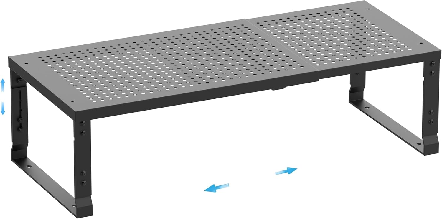 - ⭐【Expandable,Stackable】The shelves can easily expand and contract according to your storage needs, whether it is kitchen clutter or office supplies.You can combine multiple shelves together to form a large storage system, or separate them into several separate smaller units(Measure:8.11"D x 16.54"W~27.17"W x 8.31"H/7.68"H/7.05"H/6.42"H)