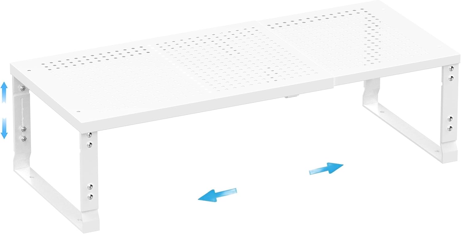 - ⭐【Expandable,Stackable】The shelves can easily expand and contract according to your storage needs, whether it is kitchen clutter or office supplies.You can combine multiple shelves together to form a large storage system, or separate them into several separate smaller units(Measure:10.24"D x 16.54"W~27.17"W x 8.31"H/7.68"H/7.05"H/6.42"H)