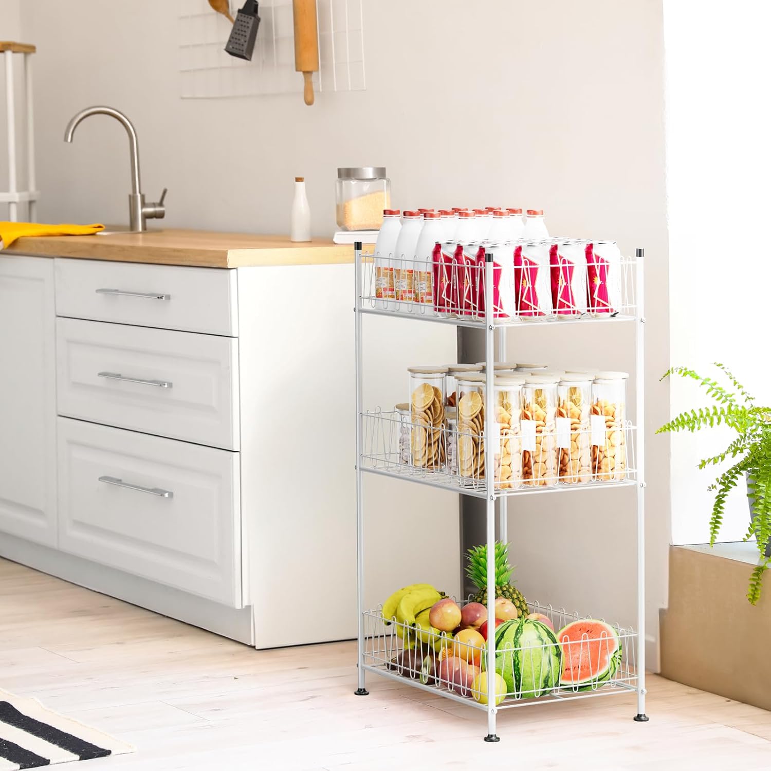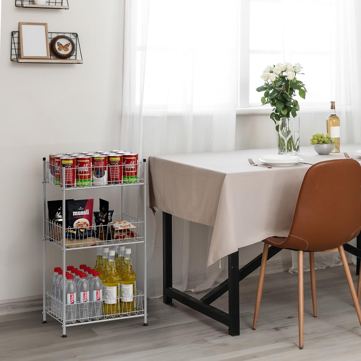 - "【Multifunctional Storage】Drink rack organizer for floor can storage multiple bottles of various sizes and shapes. As a water bottle holder rack organizer, it keeps your keep your bottles neatly arranged for a long time. It can also function as a pantry organizer, helping you keep canned goods and dry food items neatly stacked. Additionally, it works as a food storage organizer, kitchen stand, and even a bathroom stand for toiletries and other items.
