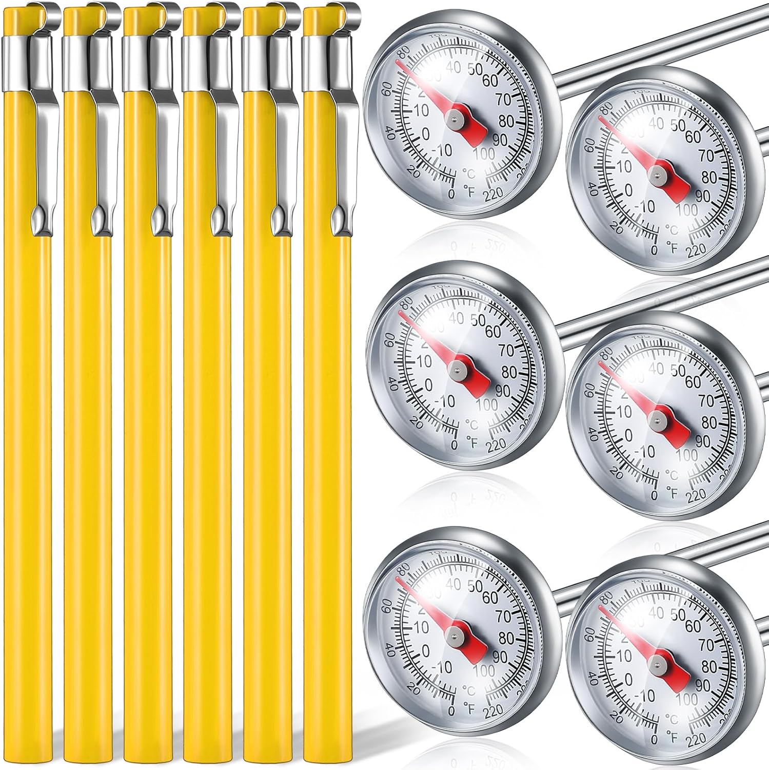 Xuhal 6 Pcs Stainless Steel Kitchen Thermometer with 5 Inch Long Stem 1 Inch Dial Thermometer Milk Frothing Food for Oven Probe Meat Grill BBQ Cooking Chocolate Water(Yellow)
