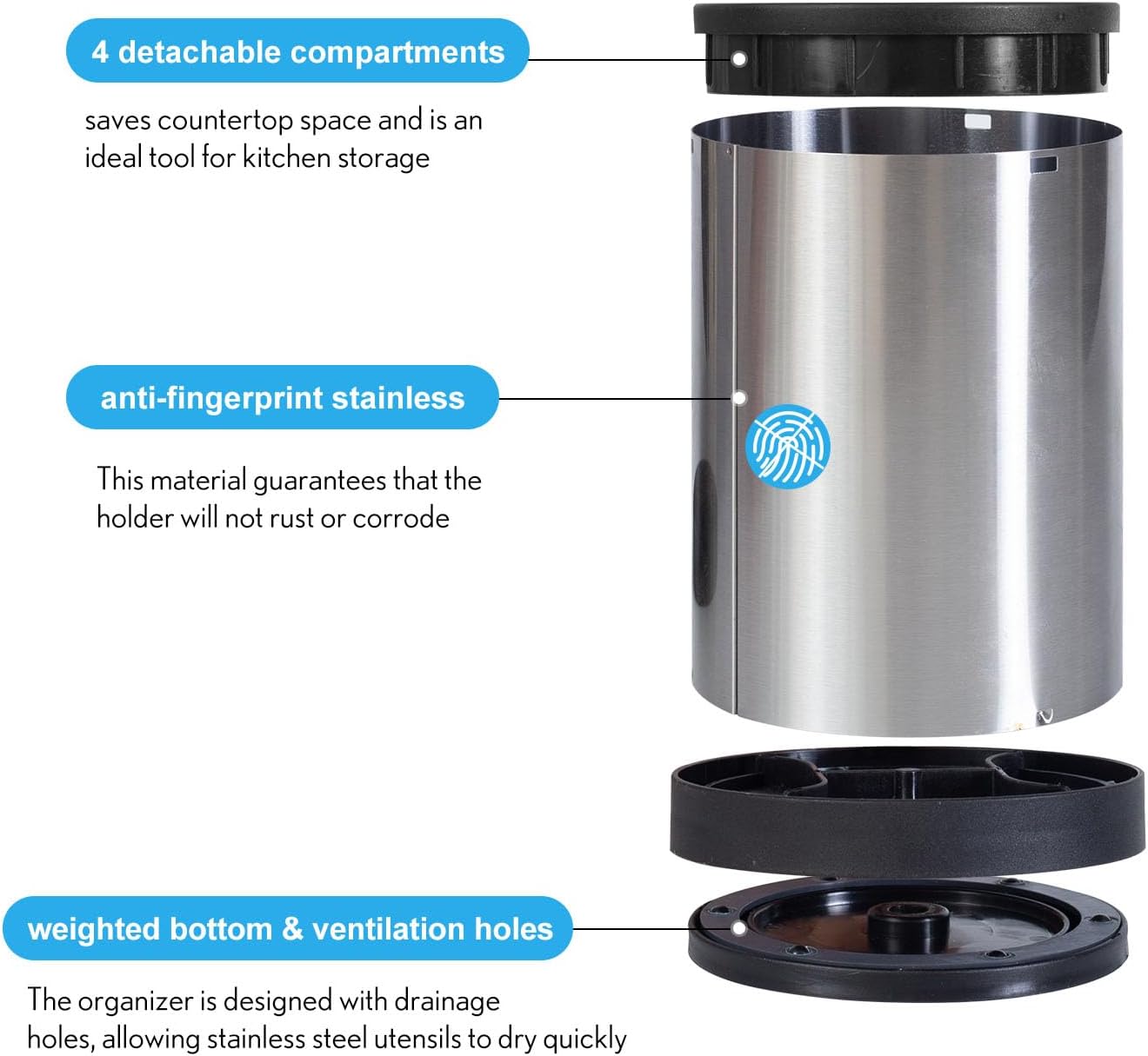 - 【Save Space For Kitchen Countertop 】:This utensil holder has 4 compartments, which can better accommodate spoons, shovels, mixers, and other utensils.Creating a clean, tidy, and organized kitchen can enhance work efficiency, reduce unnecessary worries, and waste.