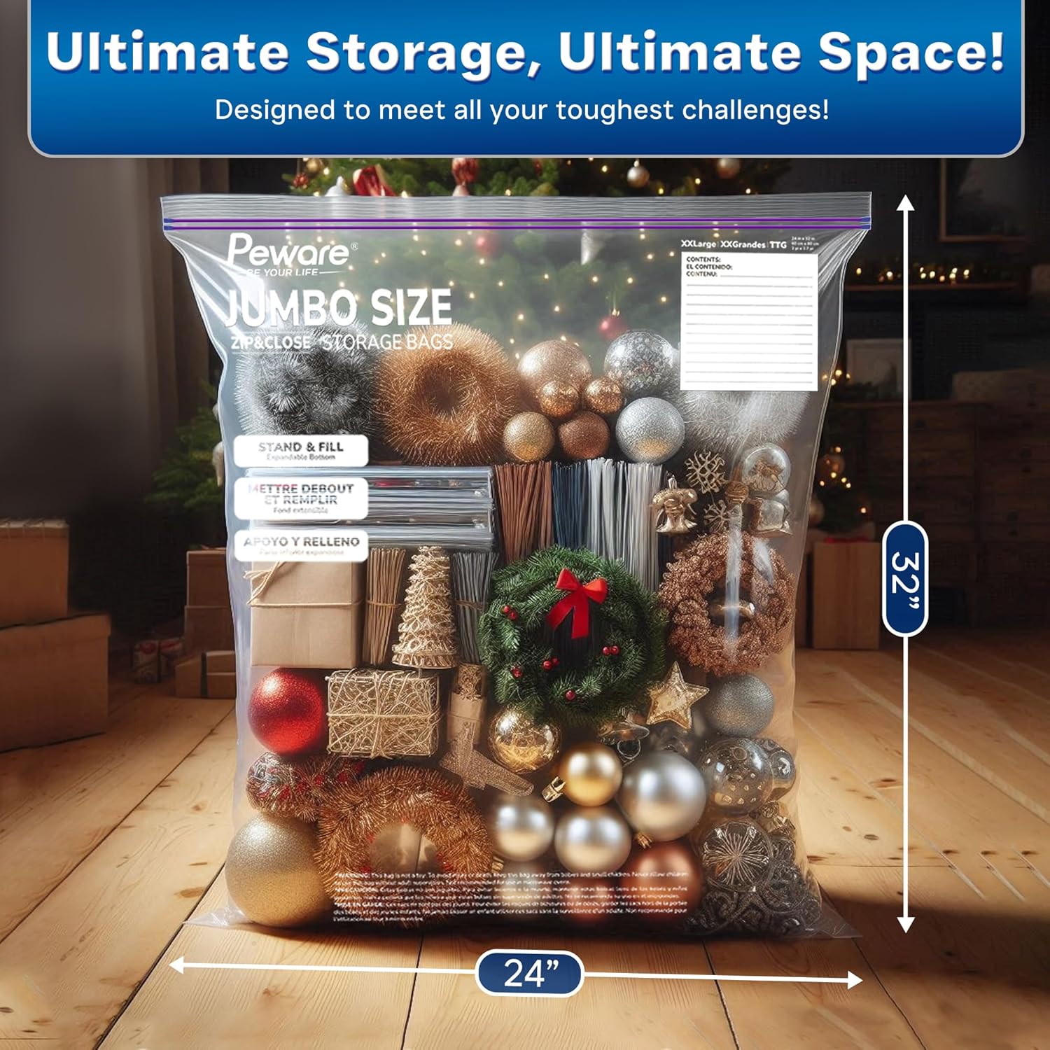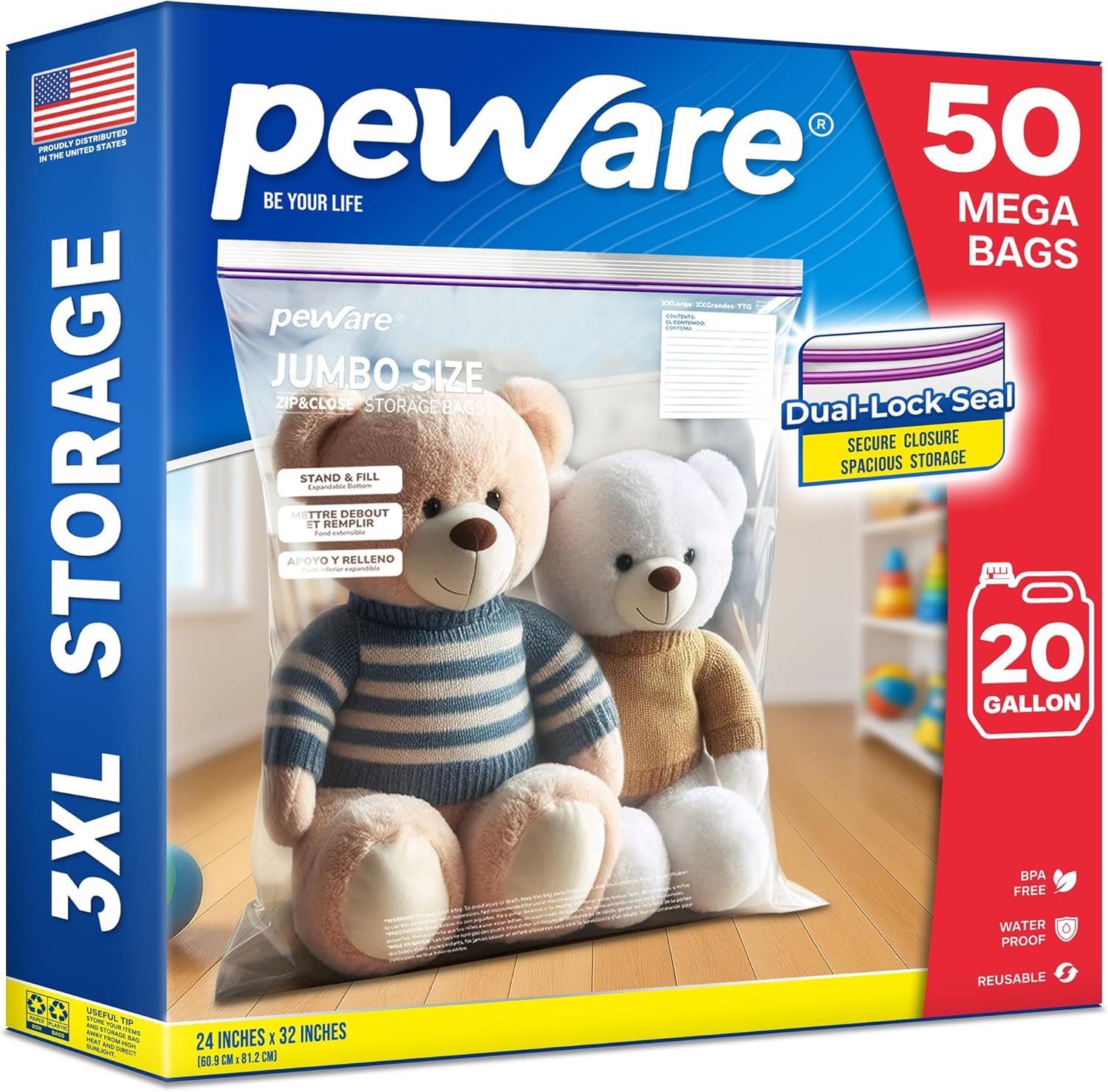 - EXTRA LARGE 24X32 INCHES SIZE: Perfect for storing bulky items like blankets, pillows, or large batches of food. With a 20-gallon capacity, these bags are the ultimate solution for heavy-duty storage needs.