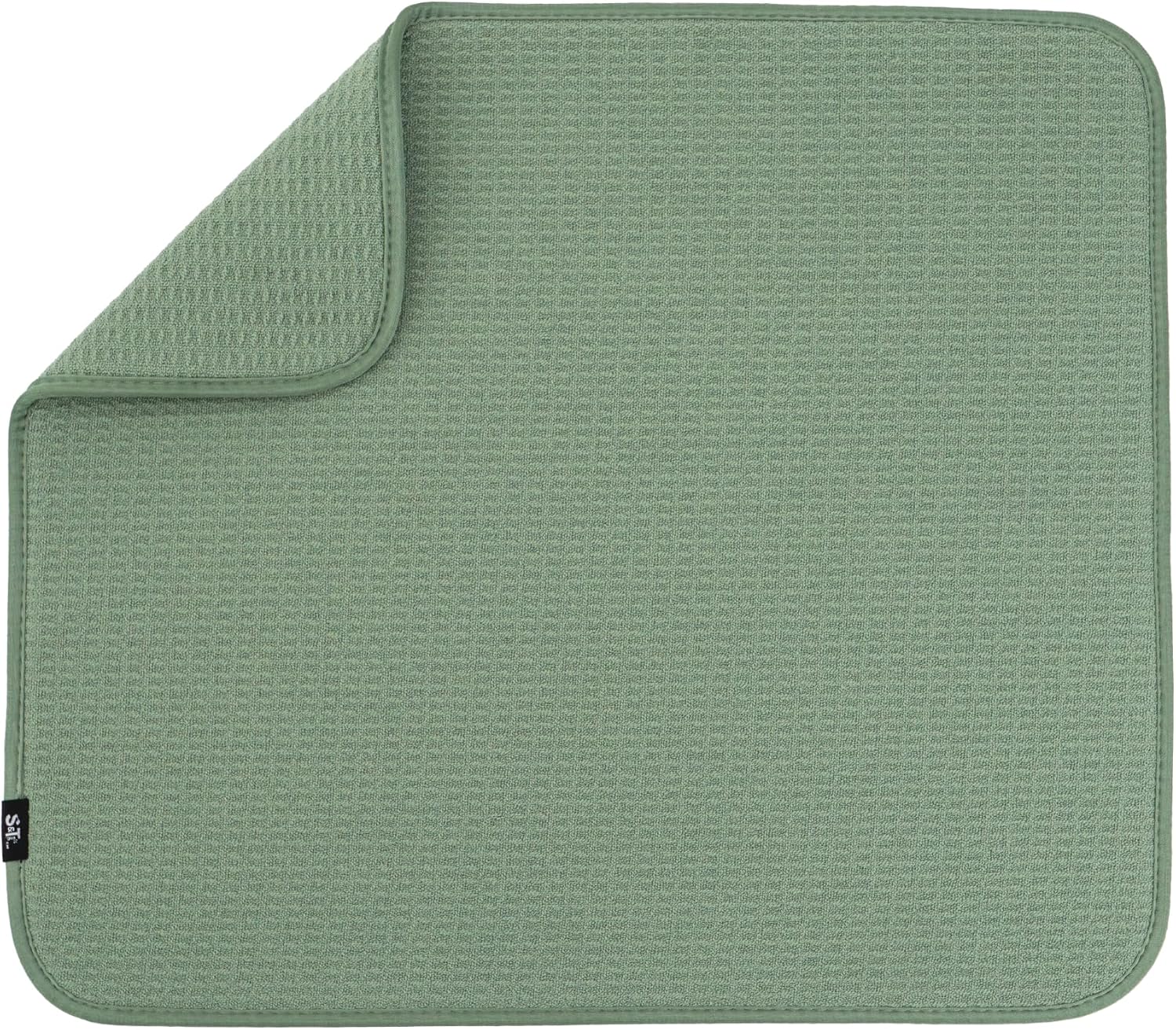 S&T INC. Dish Drying Mat, 16” x 18”, Absorbent Microfiber Kitchen Counter Mat, Dish Drying Pad for Dishes, Utensils, Pots and Pans, Large, Sage Green