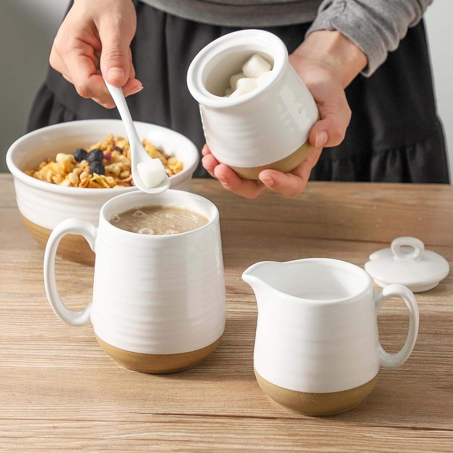 - Perfectly Sized for Daily Use: Designed with everyday convenience in mind, the sugar bowl holds 11oz and the creamer pitcher 10oz, ensuring the perfect amount of contents for regular use. This thoughtful capacity helps maintain freshness, while promoting healthier storage by preventing overfilling and wastage.