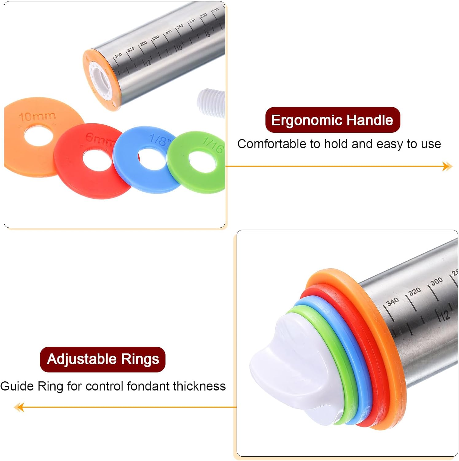- Features - Detachable rings in four sizes, 1/16", 1/8", 1/4", and 3/8" (2mm, 3mm, 6mm, 10mm) - are essential tools for kneading, the varied sizes offer versatility in dough thickness, making them for a range of recipes and culinary creations.