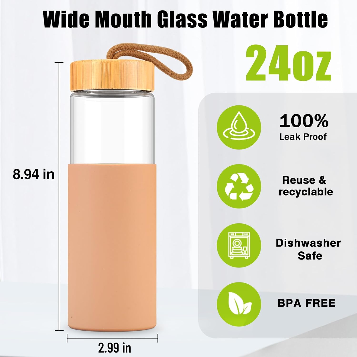 - Premium Borosilicate Glass: Made from high-quality borosilicate glass, this 24oz water bottle is durable, heat-resistant, and perfect for maintaining the taste and purity of your beverages, whether hot or cold