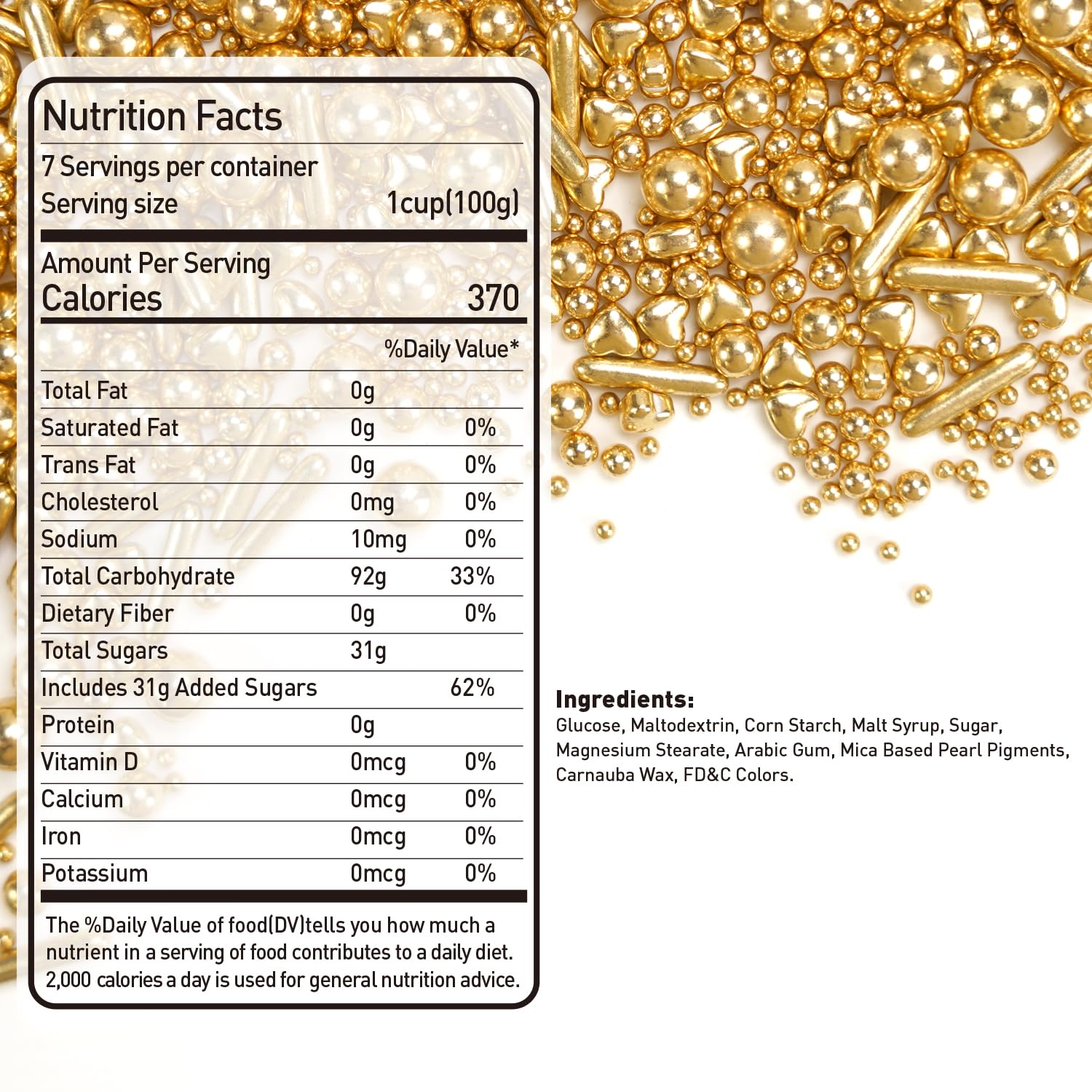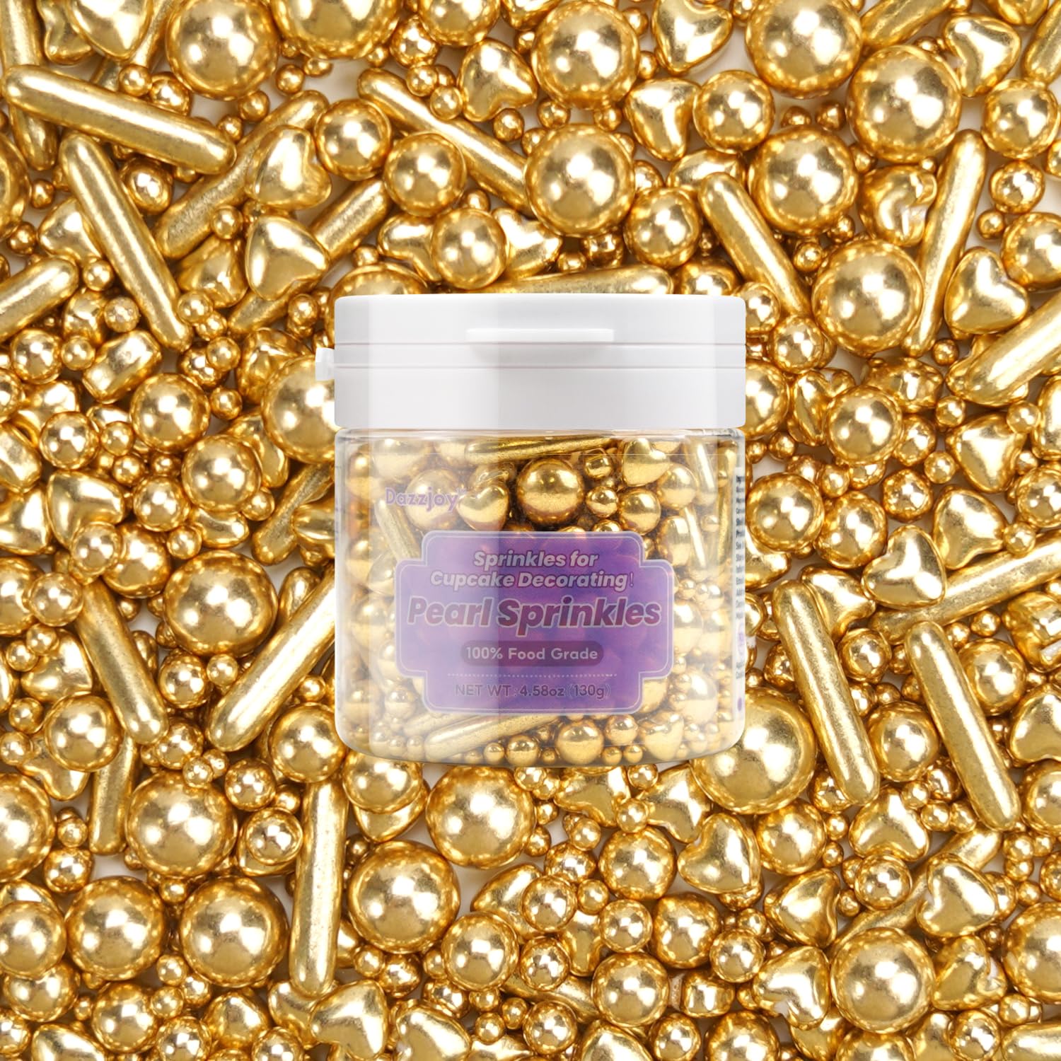 Dazzjoy Edible Gold Pearl Heart Rods Sprinkles, 130g/4.58oz, Mix Size, Gold Pearl Sprinkles for cupcake decorating, Cupcake Toppers Cake Decorations, Wedding Party Halloween Christmas Supplies
