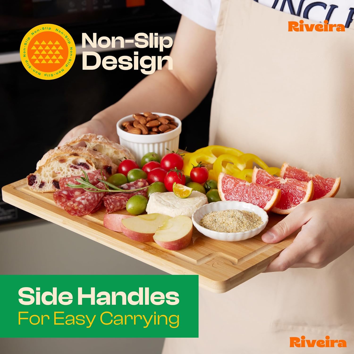 Riveira White Bamboo Wood Cutting Board – Versatile And Durable: Set Of 4 Pcs Rectangular Wooden Cutting Board – Natural Wooden Cutting Boards For Kitchen – Complete White Bamboo Wooden Chopping Board