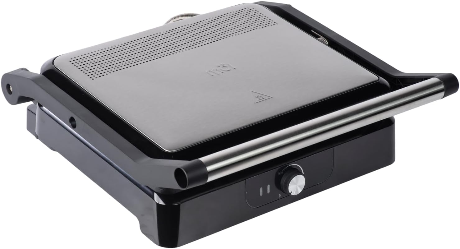 - 𝗗𝗨𝗔𝗟 𝗣𝗟𝗔𝗧𝗘 𝗚𝗥𝗜𝗟𝗟𝗜𝗡𝗚: With a 180° opening design, the top plate unfolds to double your grilling space. Use it as a flat sandwich press or open grill for chicken, steak, and vegetables. This contact grill offers versatility for indoor cooking.