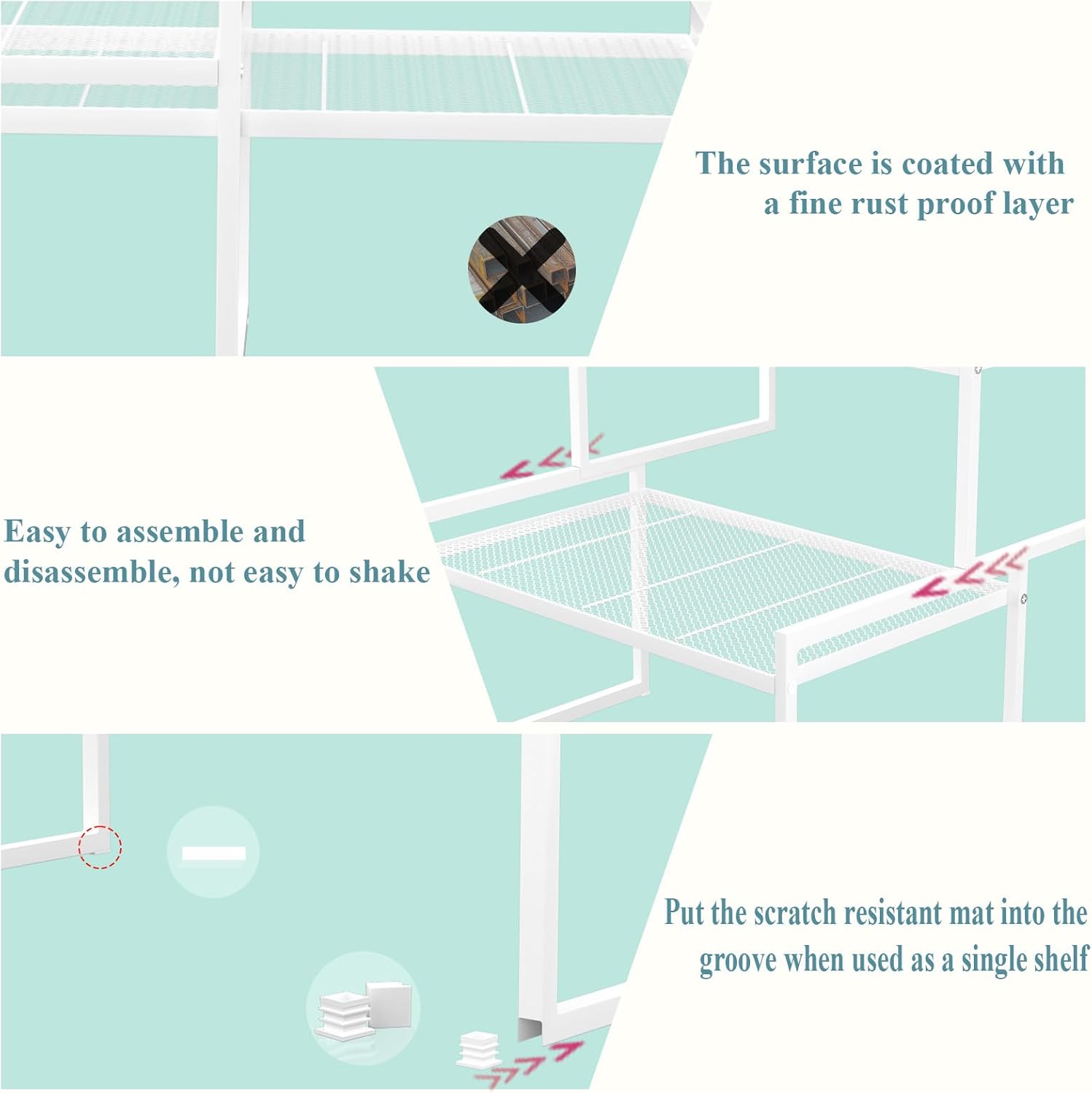 - Sturdy and Durable - Made of premium high strength allloy steel, each shelf organizer holds a maximum weight of 44 lbs. The surface is finished with rust-resistant protective coating and cabinet shelf organizer won’t get rust easily even in a humid environment