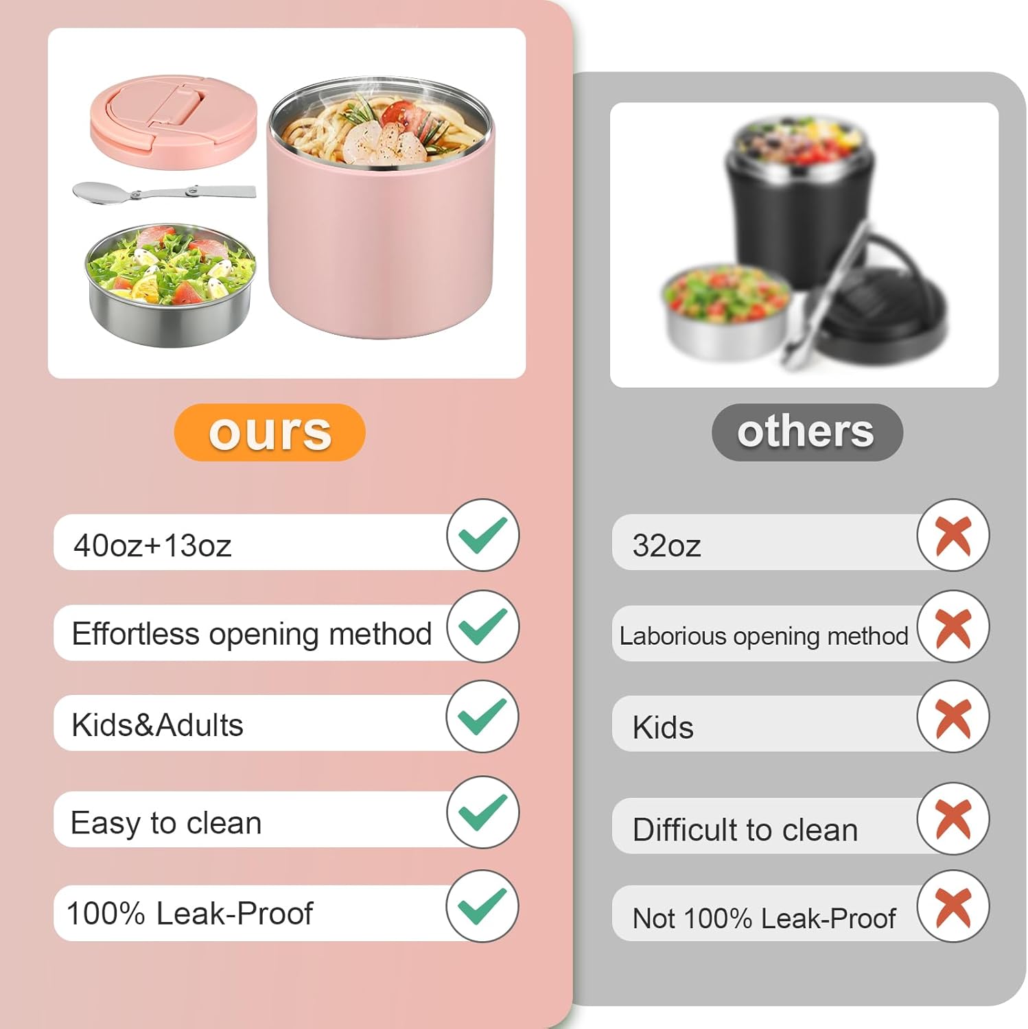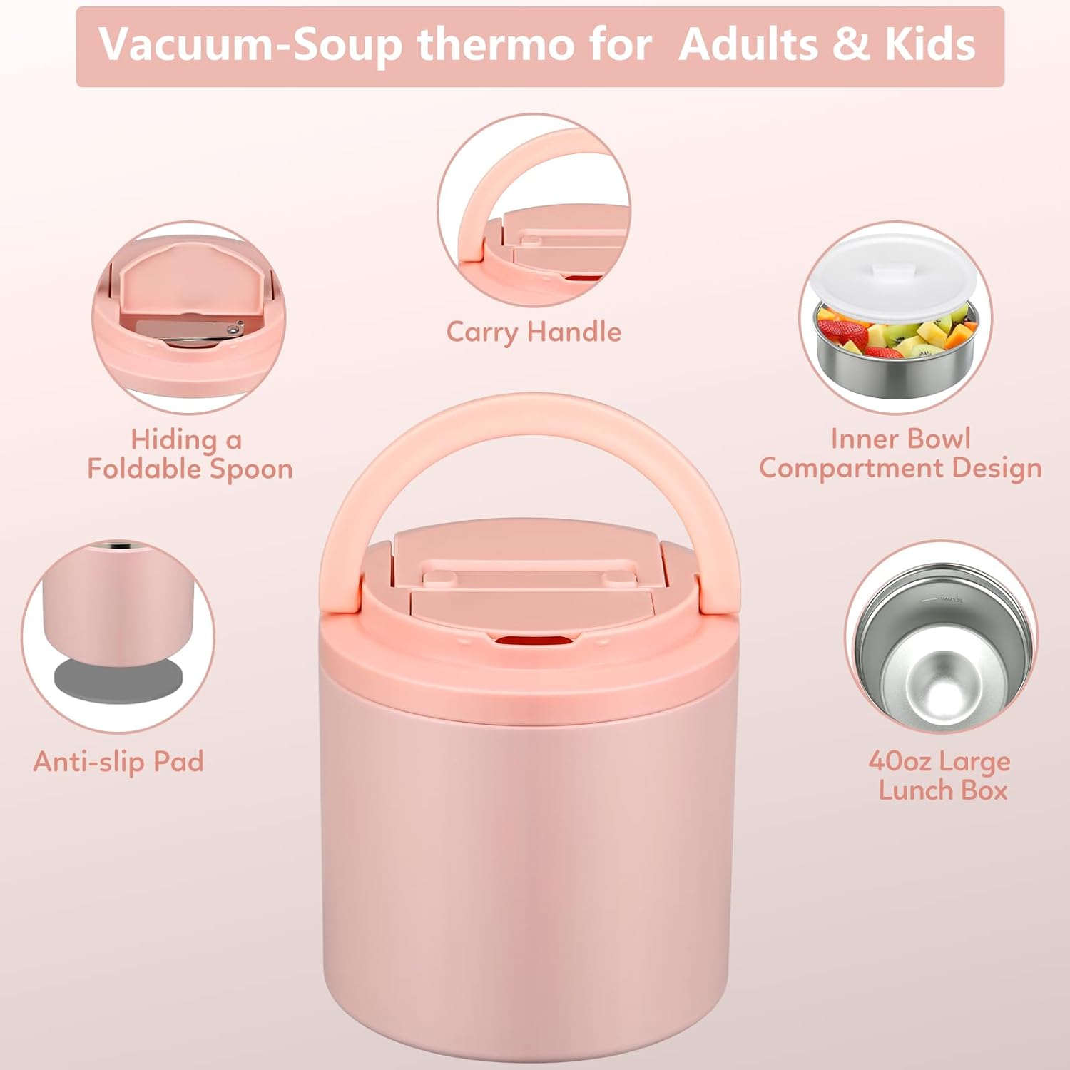 - Large Capacity Lunch Container: This spacious 40-ounce food thermo is perfect for sharing delicious meals with your group, whether at the office, school, or during outdoor adventures like camping. Perfect for soups, stews, and other hot dishes.