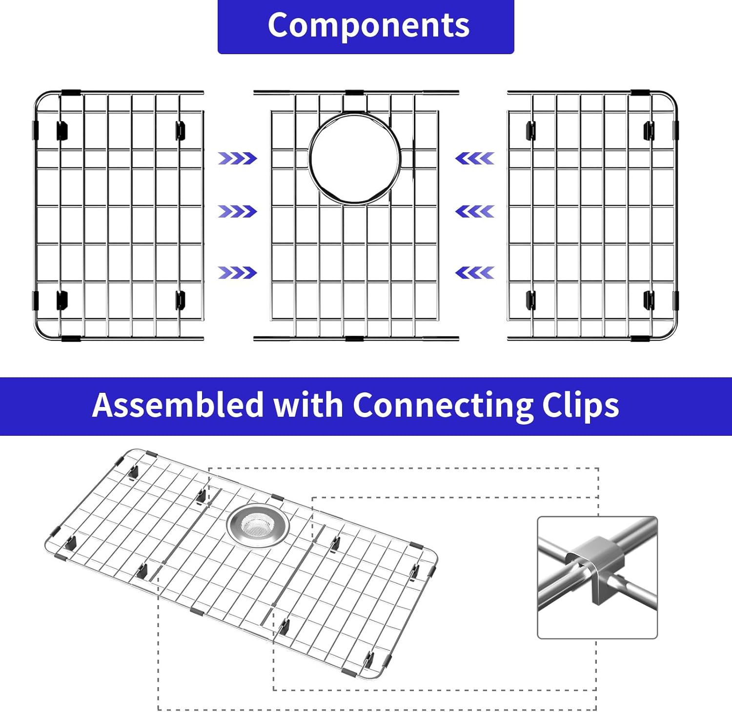 - Multifunctional Use: Besides protecting your sink, this versatile grid serves as a cooling rack, defrost grid, and drying rack for dishes, tableware, vegetables, fruits, glassware, utensils, and pans
