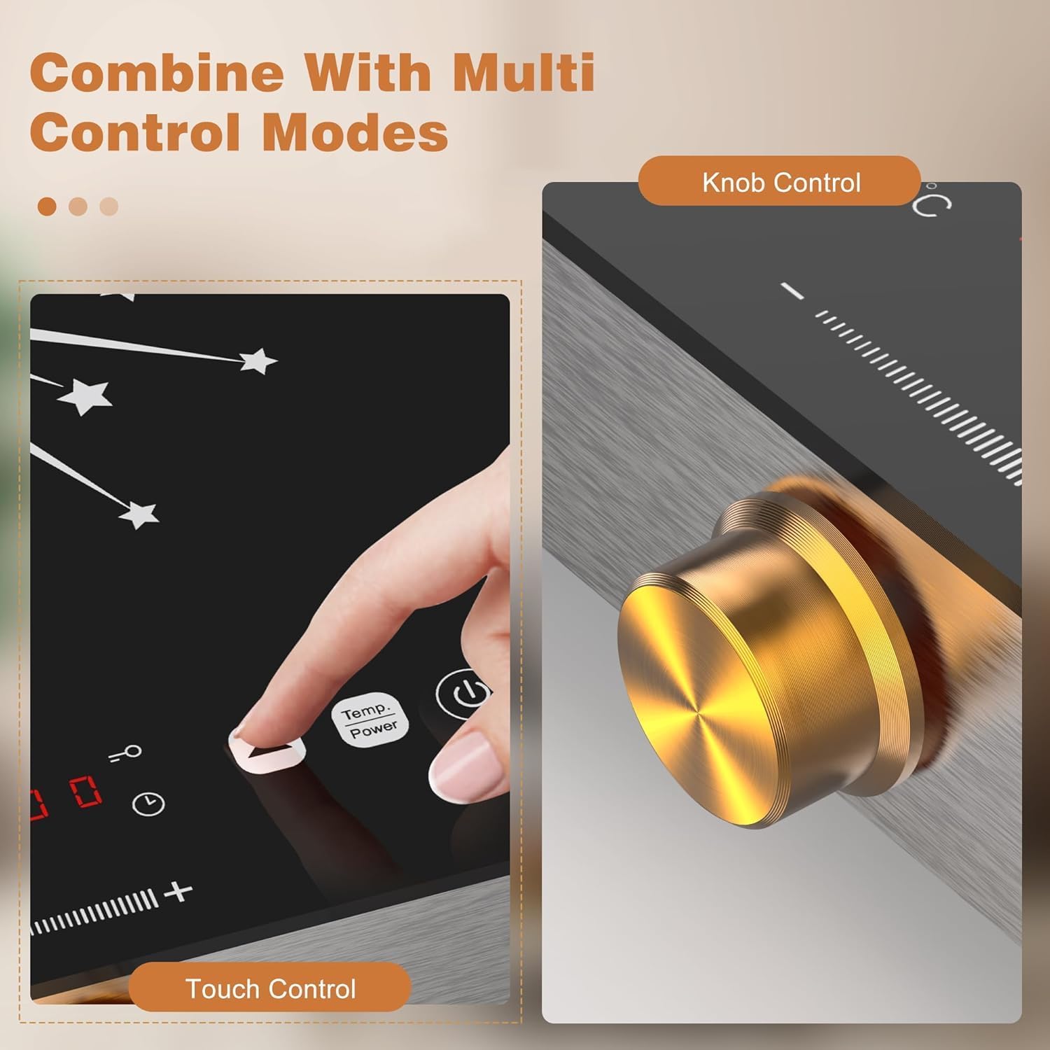 • 🍺| Intuitive Control Interface | Our 2 burners electric stove 24" is fitted with an LCD touchscreen and knob control, offering a seamless blend of modern technology and traditional ease of use. This dual control system allows for quick temperature adjustments and precise setting of cooking times, enhancing the overall cooking experience.