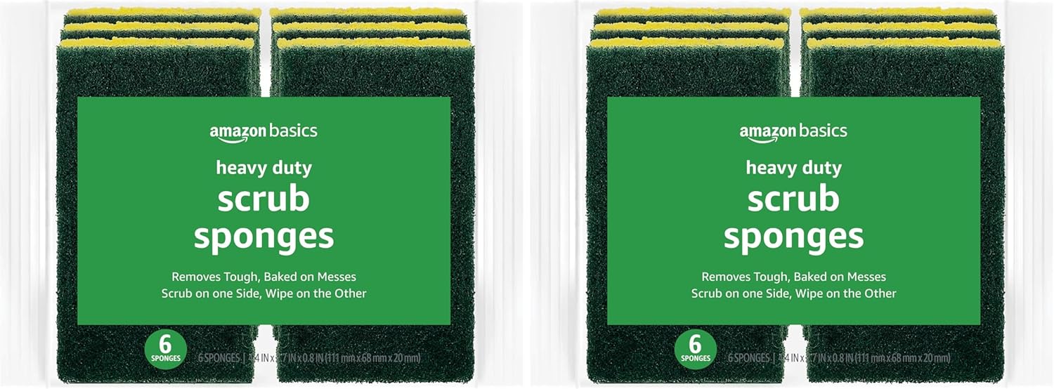 Amazon Basics Cleaning Sponges, Multipurpose, Heavy Duty Scrub Sponges, Yellow/Green, 12-Pack (2 Packs of 6)