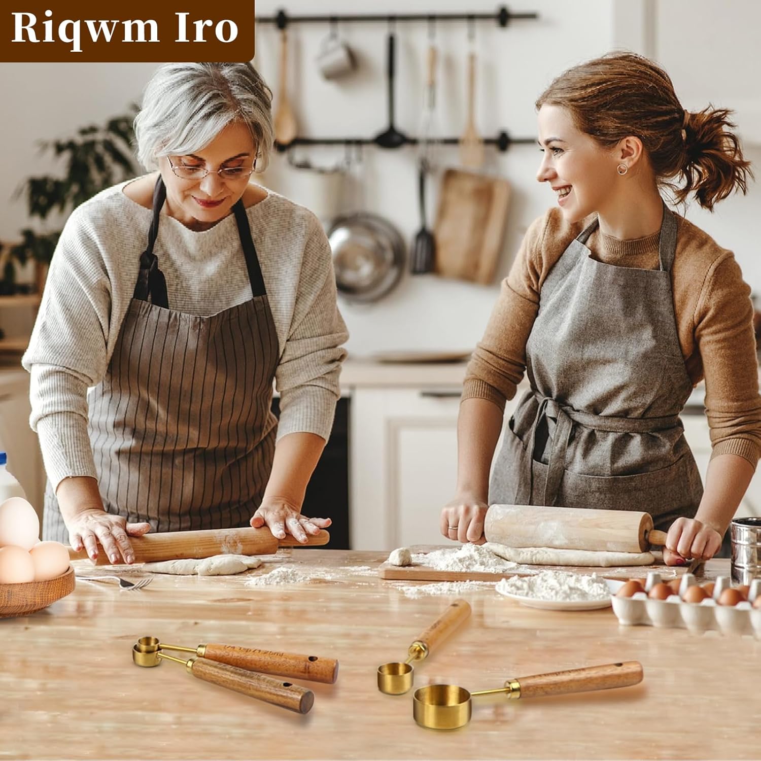 - 【Non-slip handle】Our golden stainless steel measuring spoons handle is made of high-quality wood and is carefully polished for a comfortable and non-slip grip. The handle is clearly marked with metric measurement marks to ensure the highest precision and accuracy.