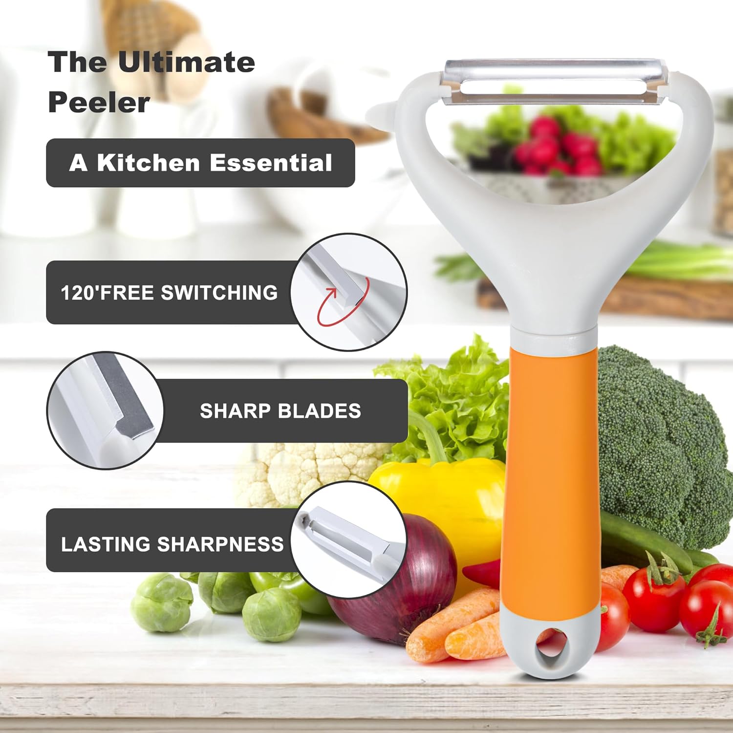 - Peels Easy: Our y peeler wide swivel blade can maintain minimal resistance when peeling, and perfectly fit the fruit or vegetable skin, won't clog with peels.The peelers for kitchen are good for potato, vegetable, apple, veggie, carrot, mango, cucumber, tomato, onion, pear and more