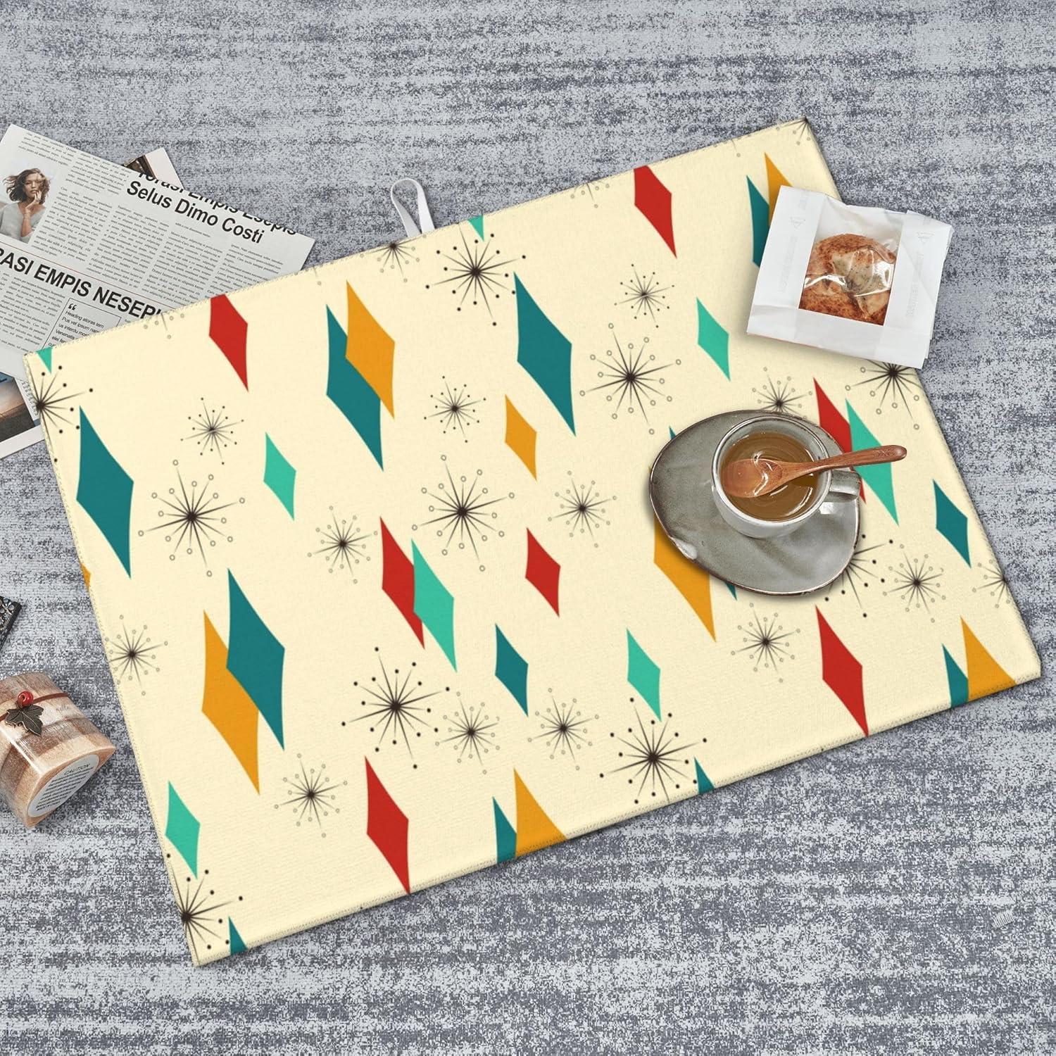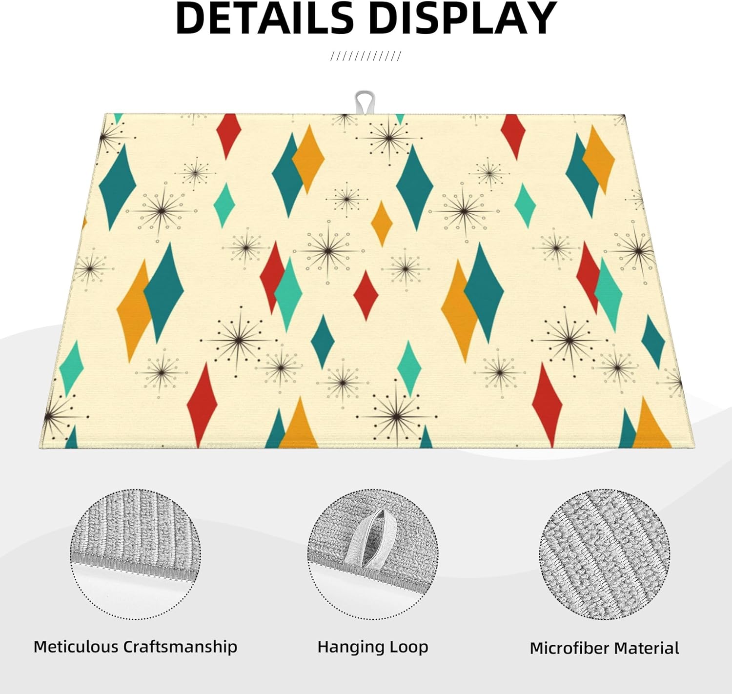 Mid Century Modern Dish Drying Mat for Kitchen Counter Atomic Retro Drying Pad 18x24 Inch Modern Absorbent Reversible Yellow Dish Drainer Rack Mats