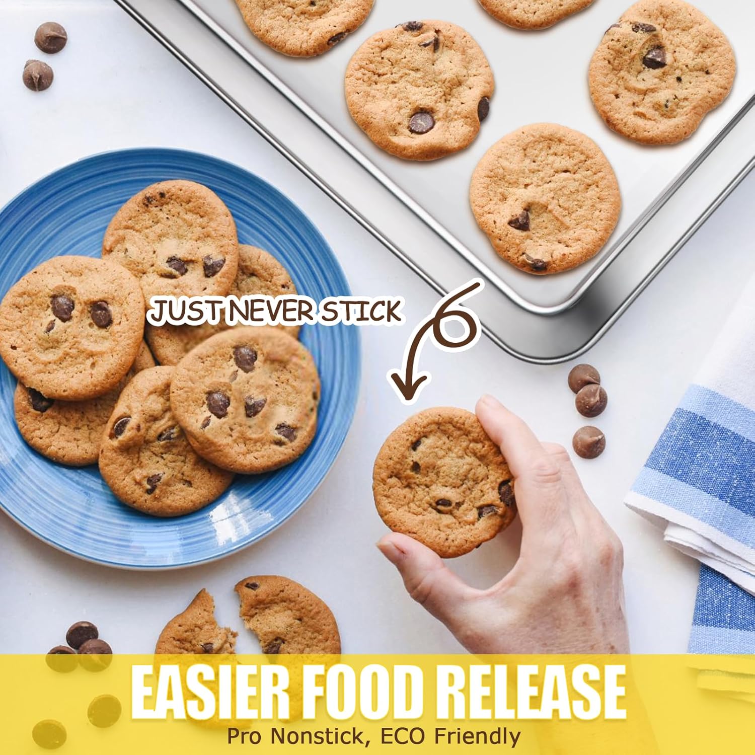 - 【PREMIUM HEALTHY MATERIAL】 The baking sheets are made of high quality stainless steel without any chemical coating, wouldn't create chemicals at high-temperature baking, great replacement to aluminum pan, rust free and healthy for your daily use.
