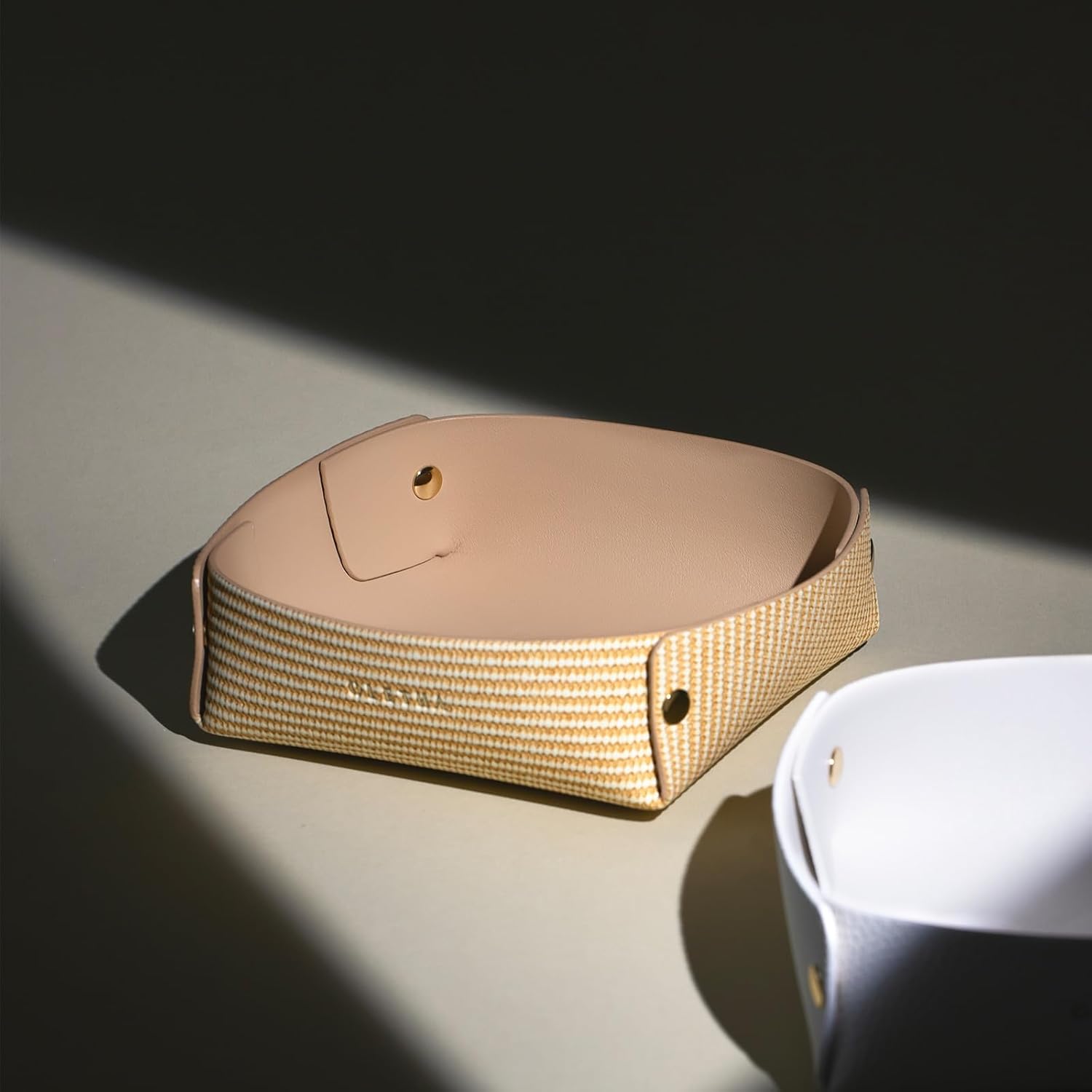 OLETHA Napkin Holder for Luncheon Napkins - Aesthetic Desk Decor for Kitchen & Dining Table - Rattan Textured, Beige
