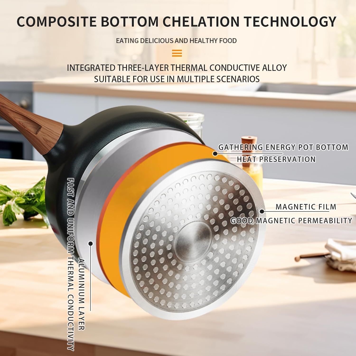 - 【Even and Quick Heating】Suitable for Compatible Induction-The base is flat, suitable for all stoves and heats evenly on induction, electric, gas, ceramic and halogen stoves. But Not suitable for Oven