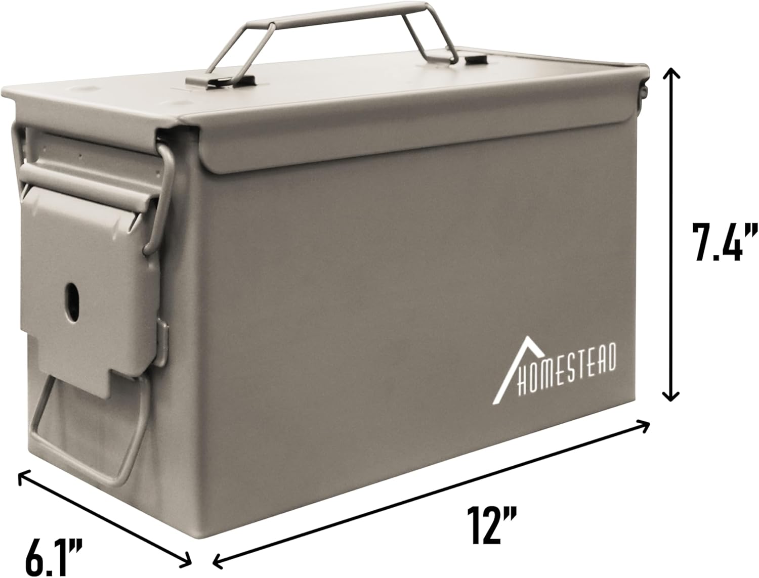 HOMESTEAD 50 Cal Metal Ammo Can – 4 Pack M2A1 Military Steel Ammo Storage Box, Airtight and Water-Resistant Ammunition, Dark Brown Color