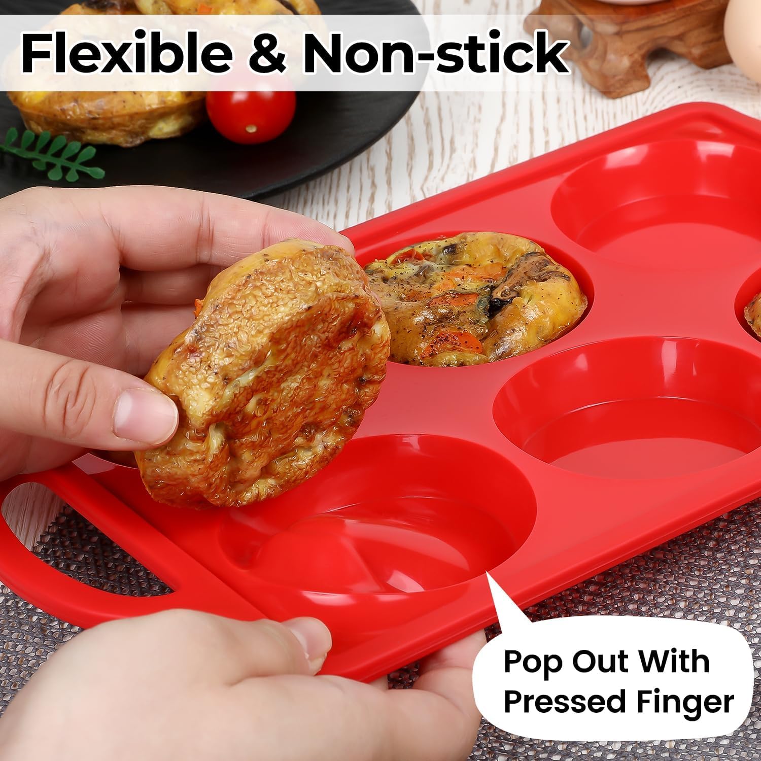 - Metal Reinforced Silicone Muffin Top Pan: The hidden stainless steel frame around the outer edge makes silicone egg molds more sturdy
