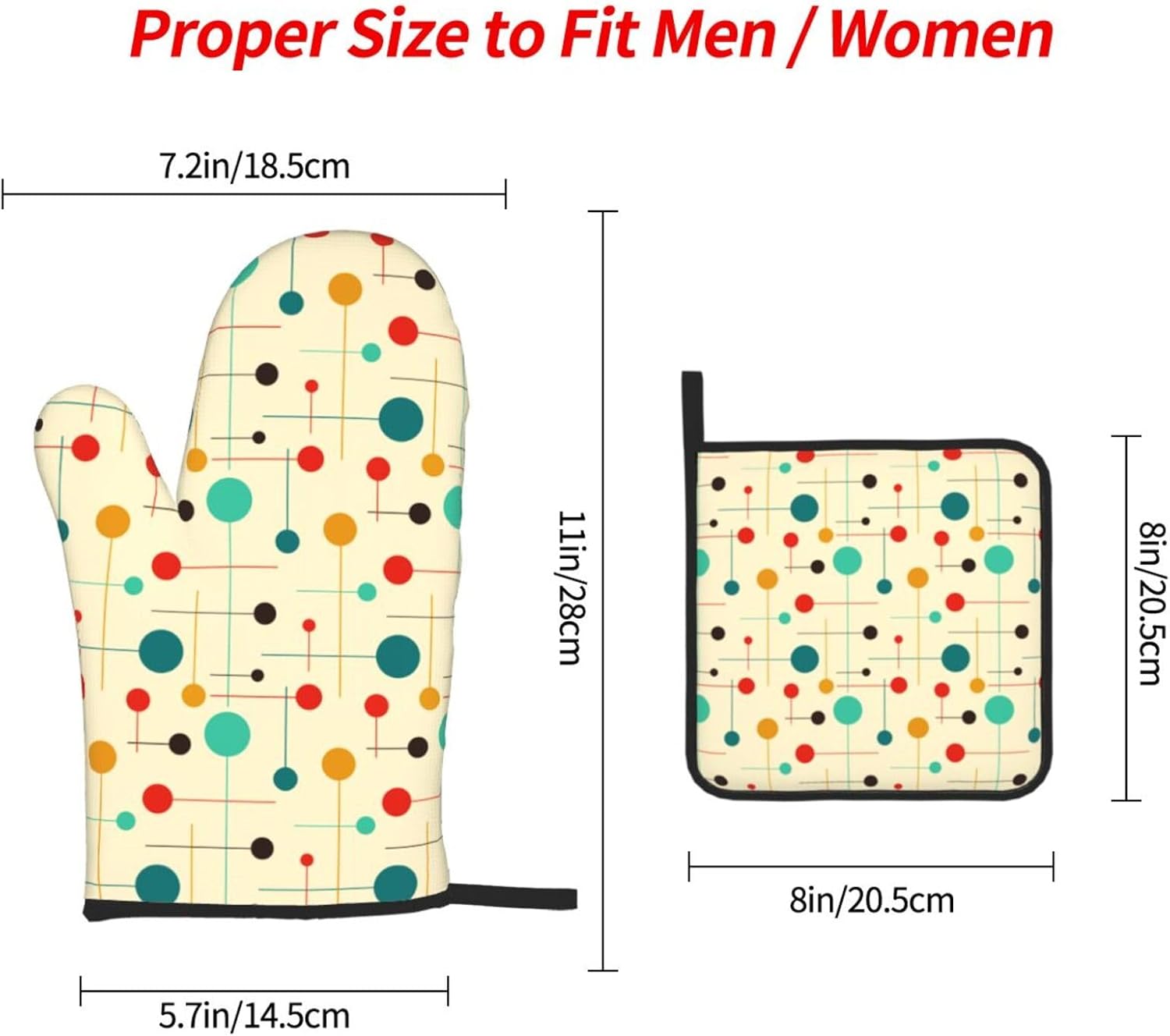 Mid Century Modern Atomic Retro Oven Mitts and Pot Holders Sets of 3 Heat Resistant Yellow Hot Pads Oven Gloves for Kitchen Cooking BBQ Baking