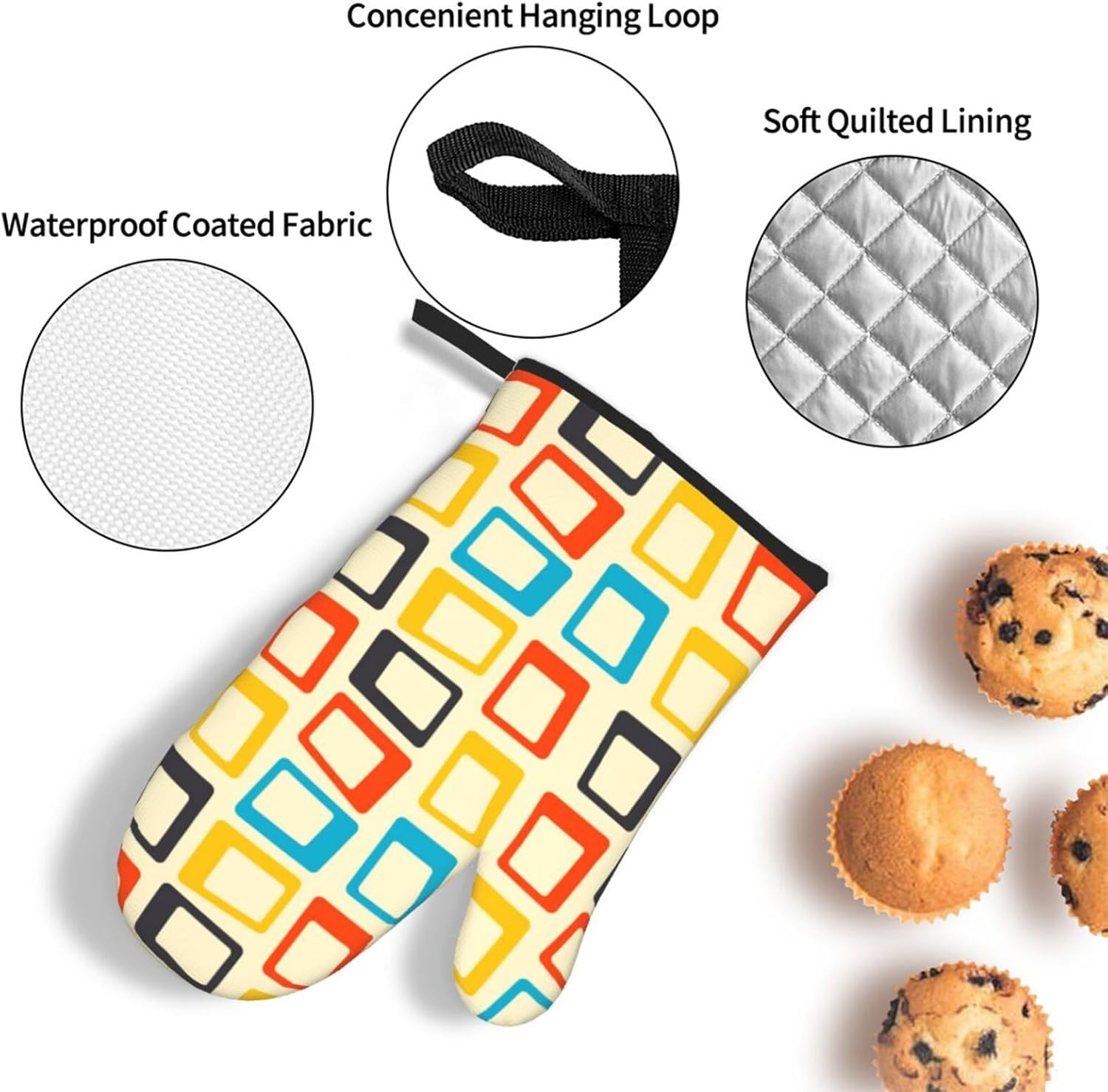Mid Century Modern Oven Mitts and Pot Holders Sets of 3 Retro Heat Resistant Non Slip BBQ Gloves for Cooking Grilling Baking Kitchen Decor