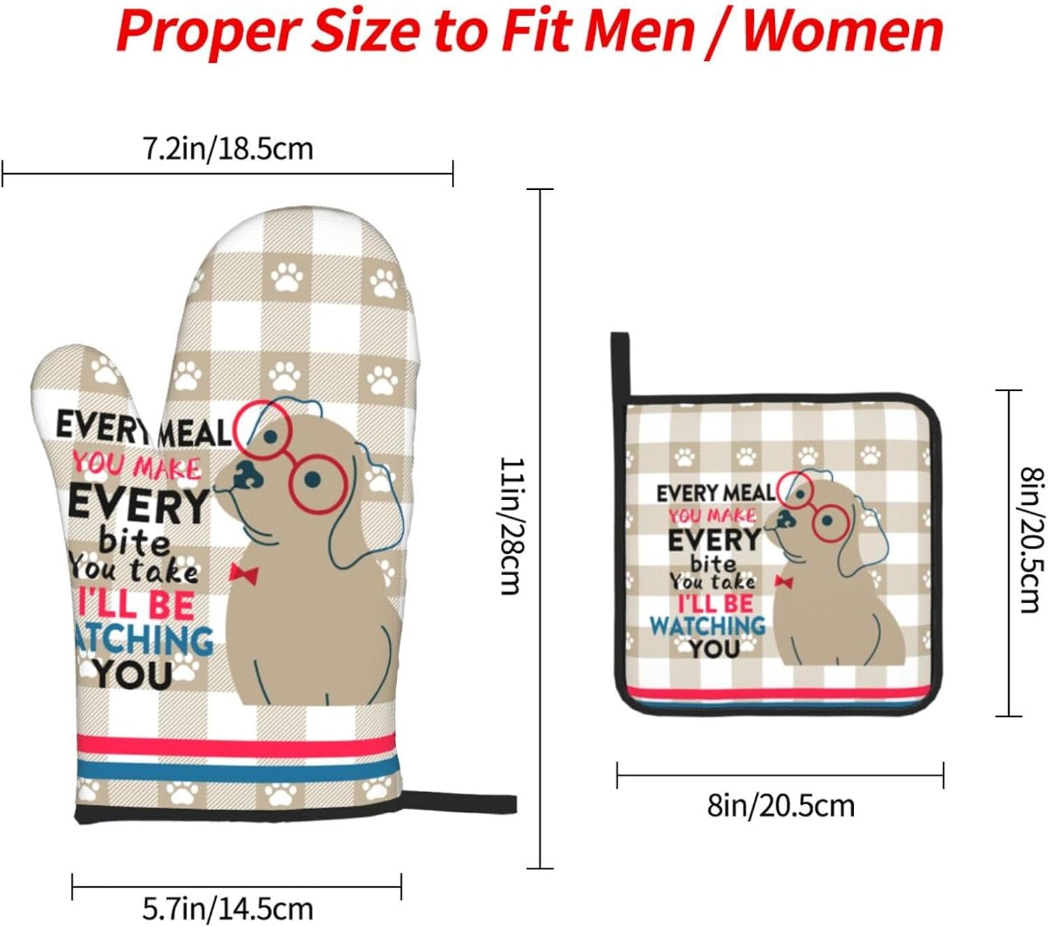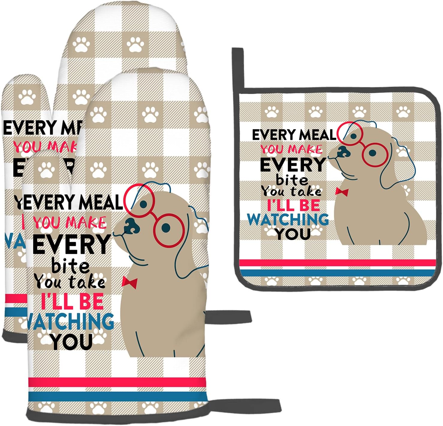 Funny Dog Oven Mitts and Pot Holders Sets of 3 Heat Resistant Hot Pads Cute Oven Gloves for Cooking Grilling Baking Kitchen Decor, Kitchen Gifts for Cooks Baker Cooking Lover Women